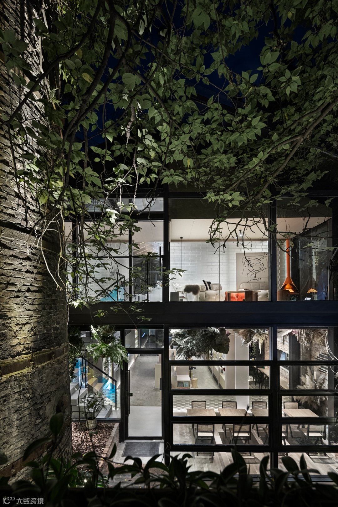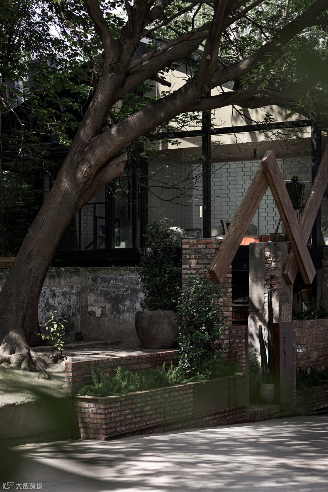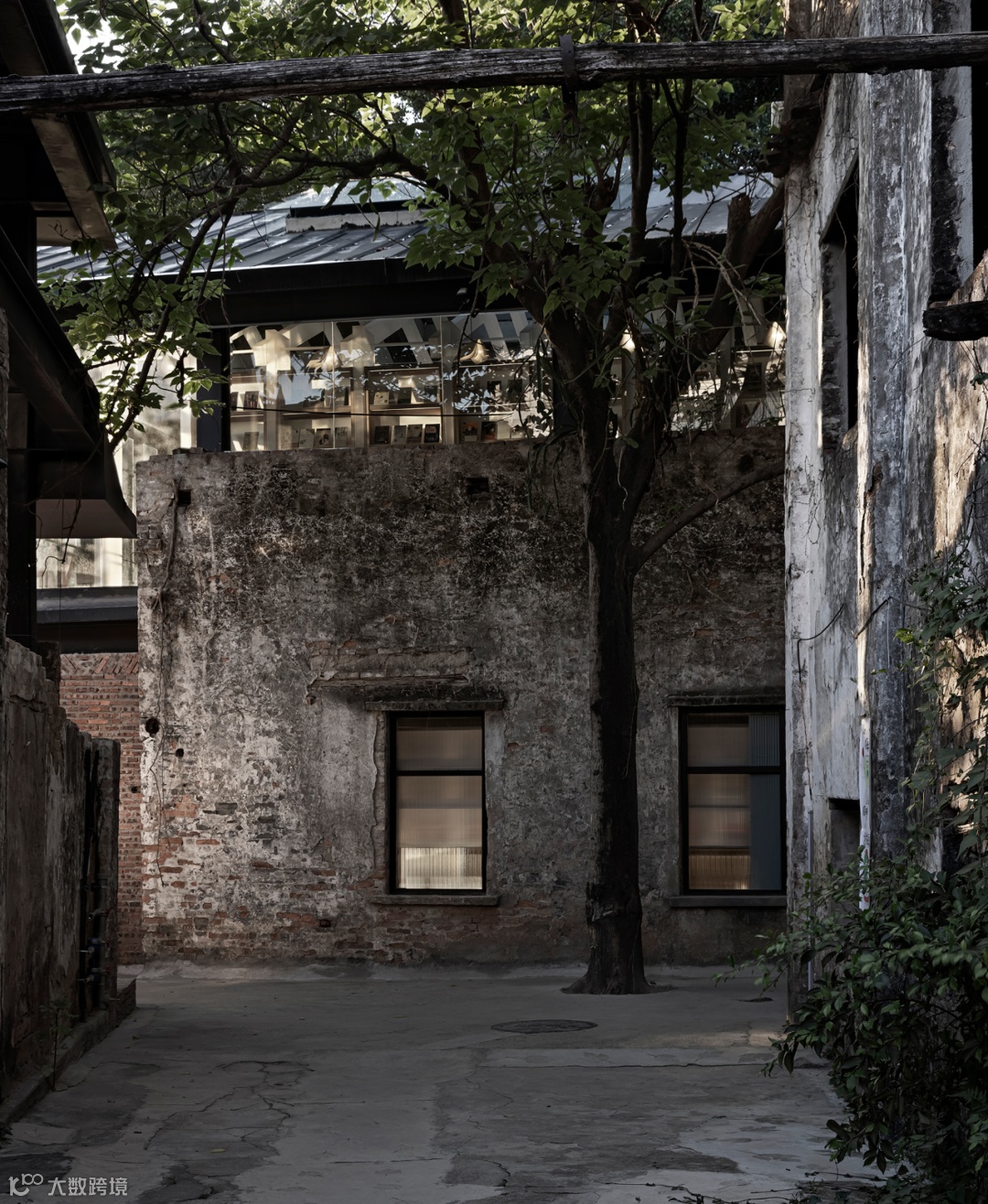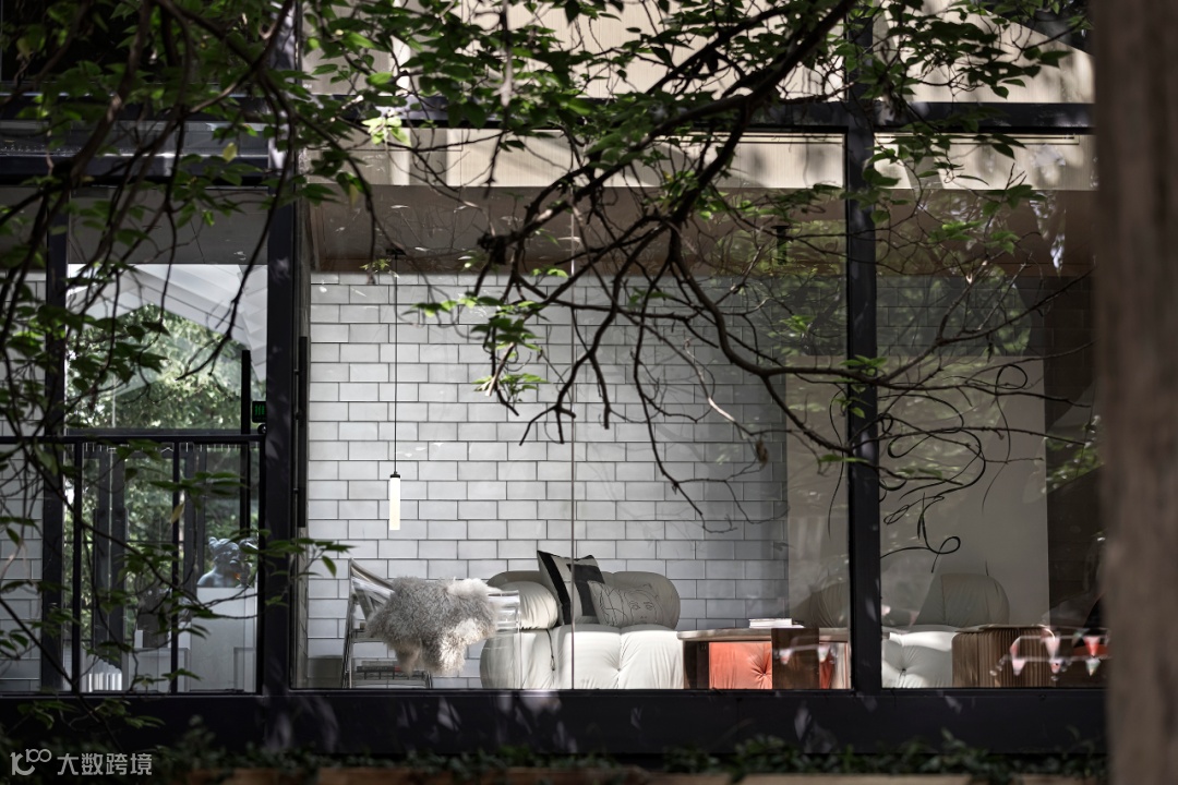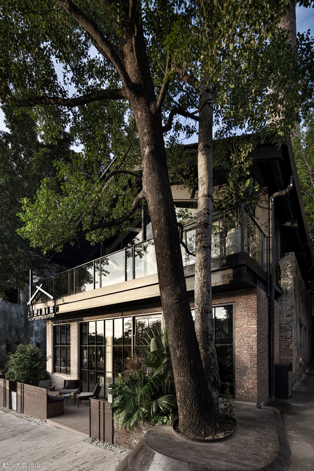 上野书屋整体建筑环境属于半遮挡的状态,室内与室外任意联通,一扇门一扇窗,开合之间,四时风景静静划过,坐在院子里、露台上,看婆娑树影斜射在斑驳墙面,影子随着光线变换成任意形状,风吹过书的扉页,摩擦出轻柔的沙沙声,有时细雨,却丝毫不影响好心情,从白天到入夜,每一个时刻都不忍惊扰。