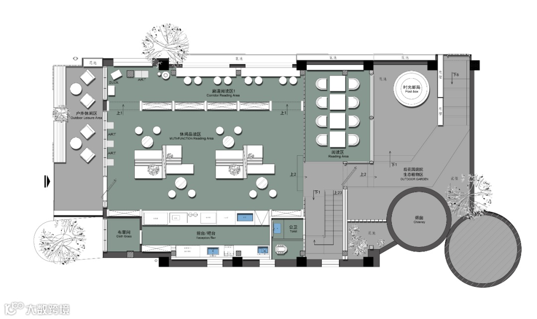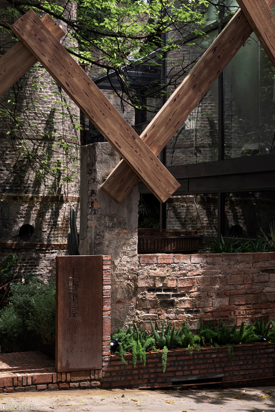 上野书屋与惠州城市的故事,始于一个废旧的老烟囱。被完整保留的酒厂锅炉房,老烟囱高耸入云,成为见证着城市变迁的文化符号,穿越70年时间更迭,人与自然赋予此处鲜活的生命力。书屋取名“上野”,也取自烟囱向上、与自然环境相生之形,化为天天向上、自然生长之意。希望来到书屋的人,都能感受到这里传递出的进取向上、崇尚自然、热爱生活的内在力量。