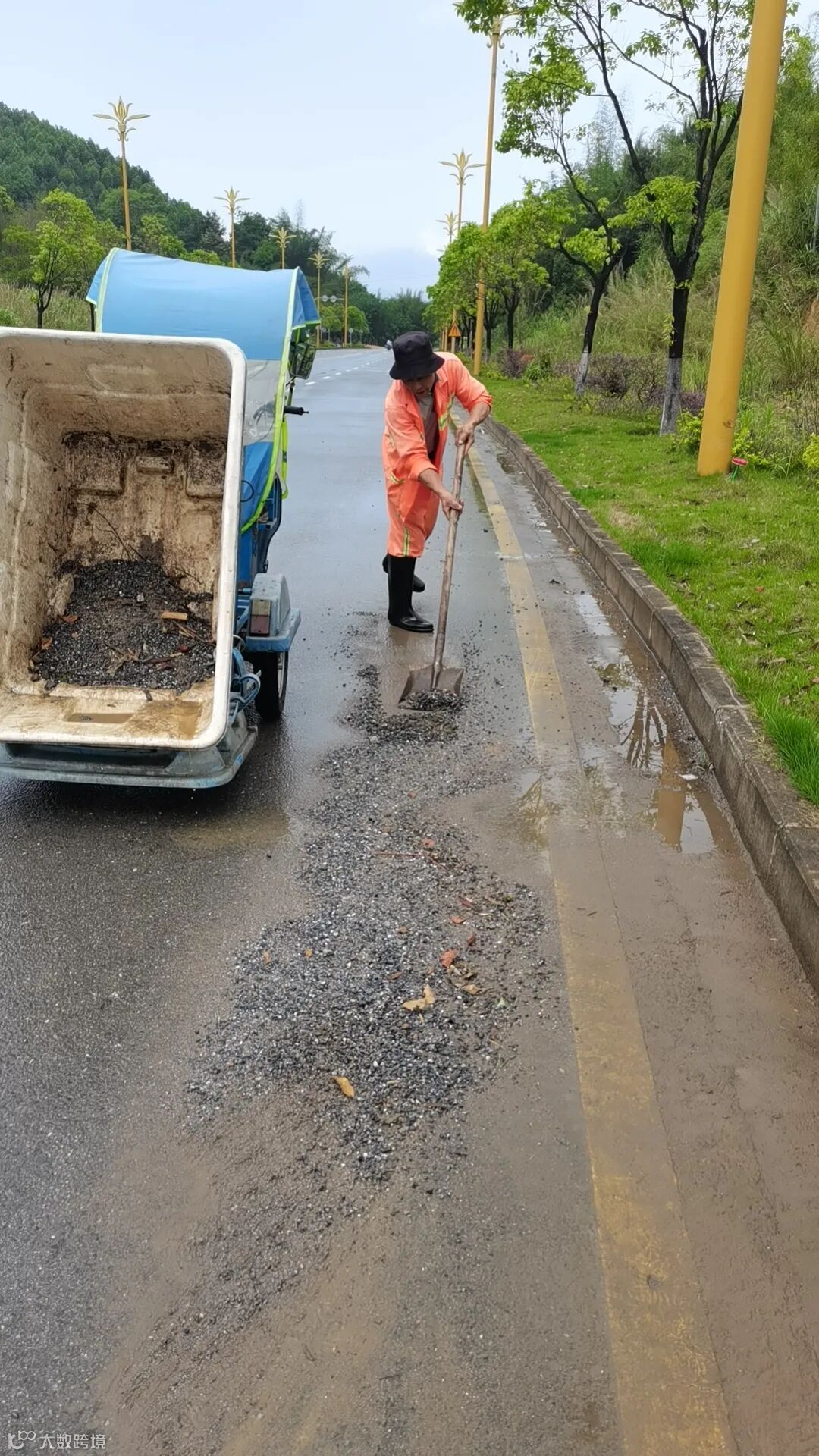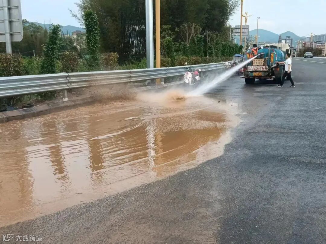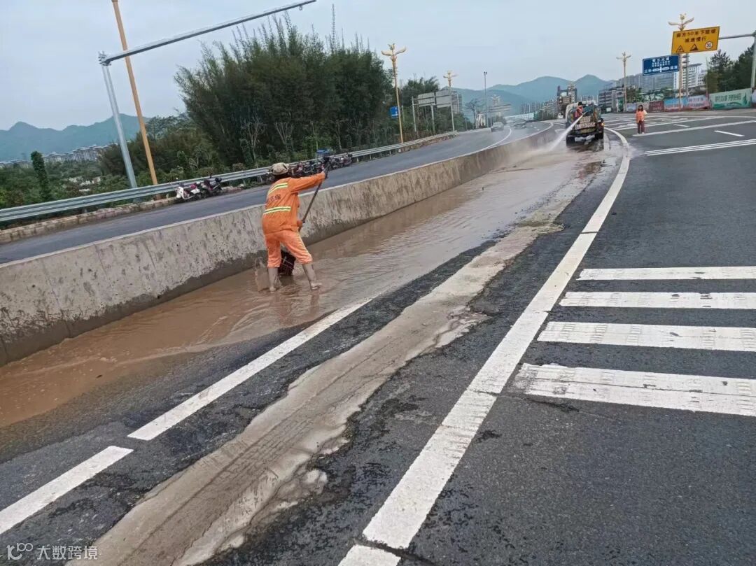 4、精细化清理及冲洗暴雨过后流出路面大面积泥巴。