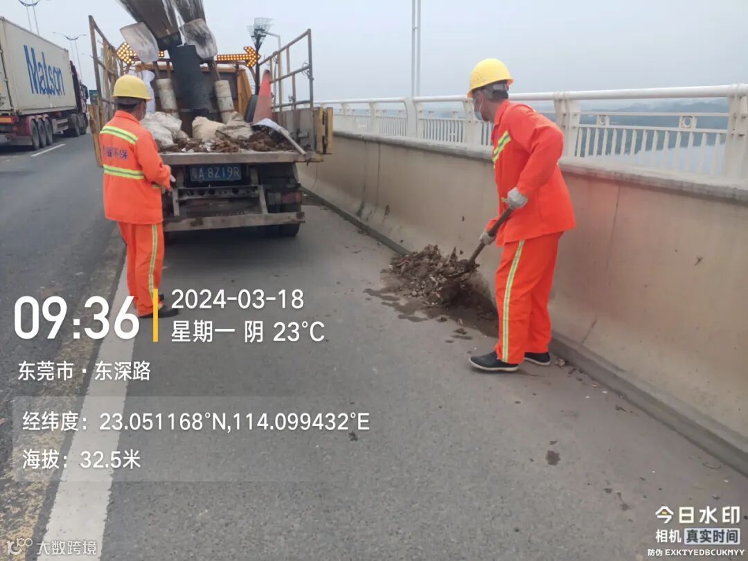 4、突击队重点清理龙桥大道凹槽泥沙和龙桥桥边泥沙。