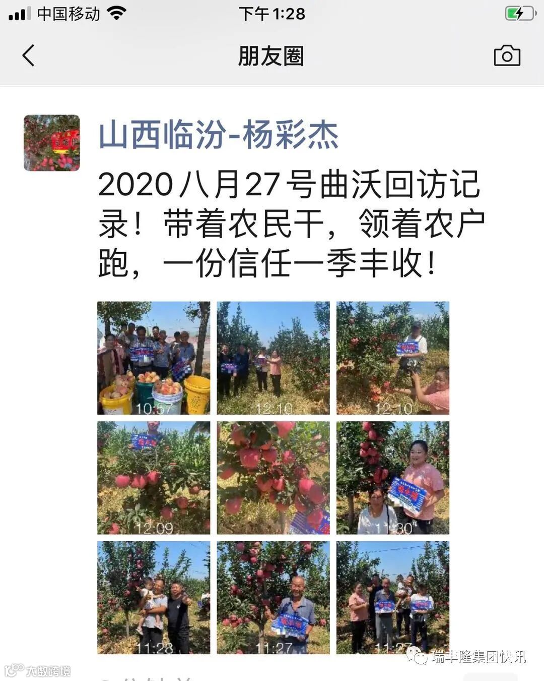 导读:2020年8月27日山西曲沃瑞丰隆回访记录!带着农民干,领着农民跑,一份信任一季丰收!喷施使用了瑞丰隆的苹果