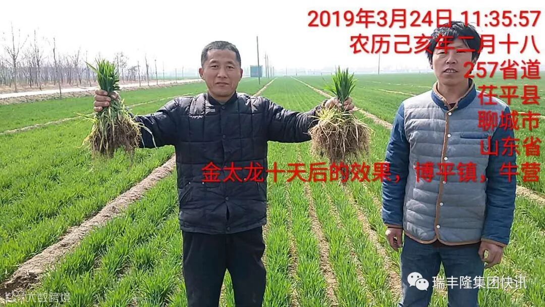 导读:山东茌平县小麦使用金太龙根系旺,长势好!对比十天后,效果显著!选择金太龙,就是选择丰收希望!