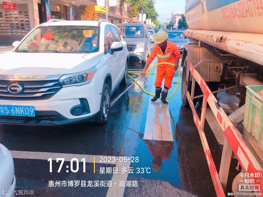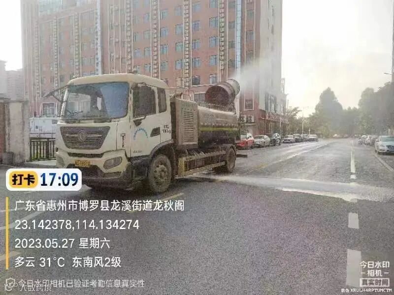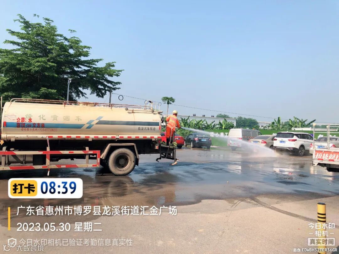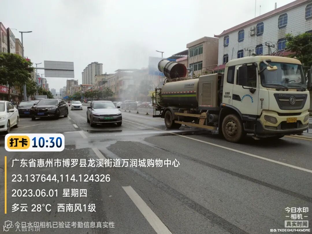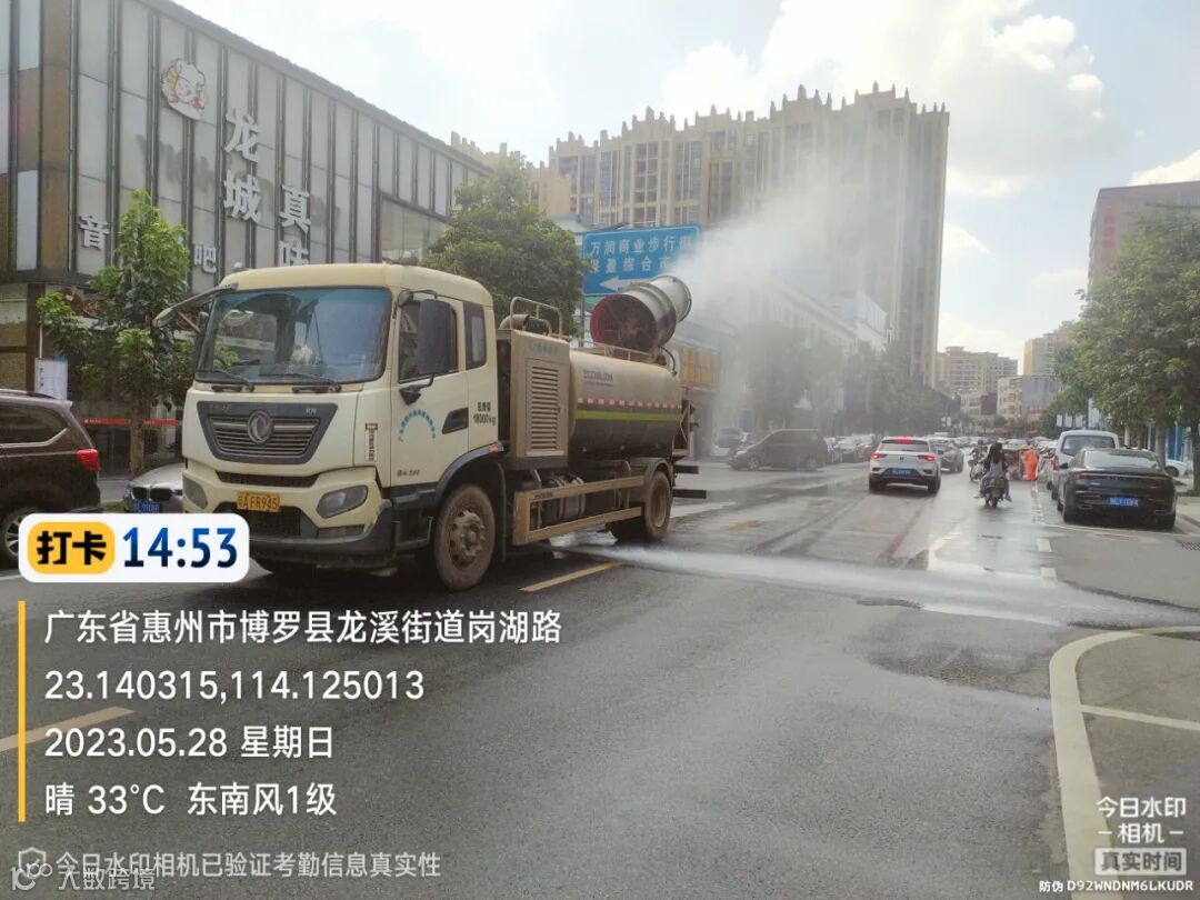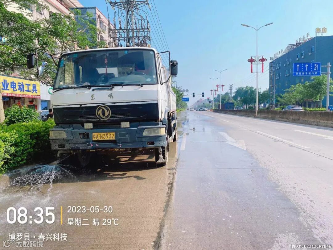 加强镇区和龙桥大道、广汕路的洒水降尘作业。