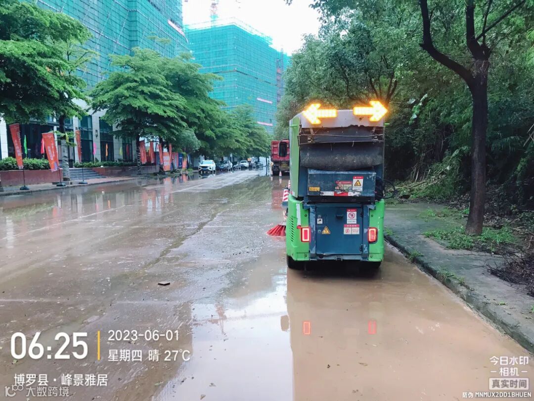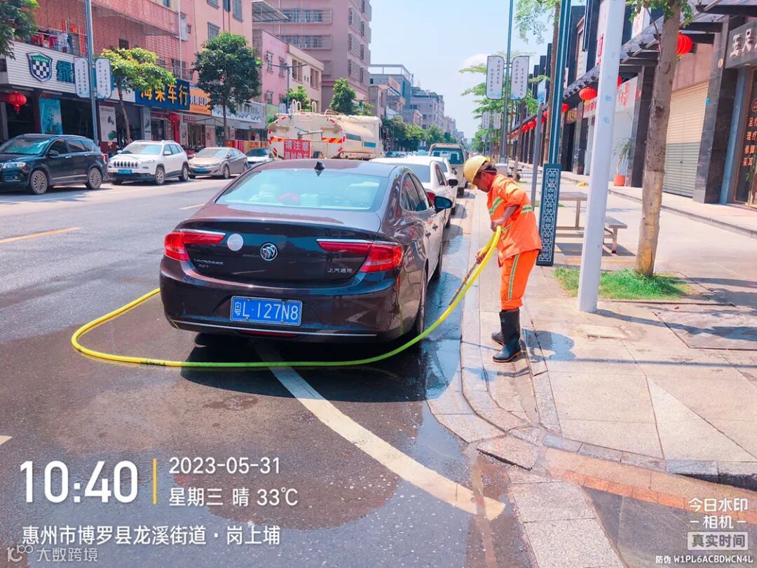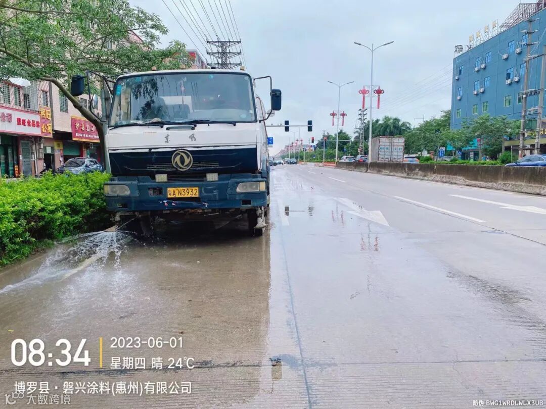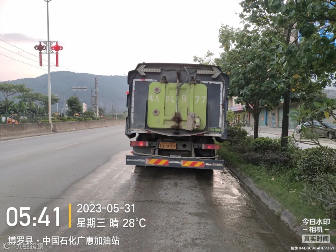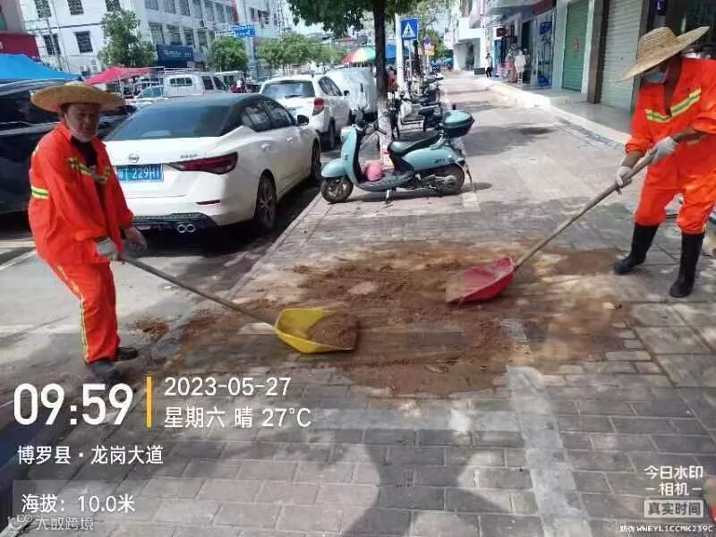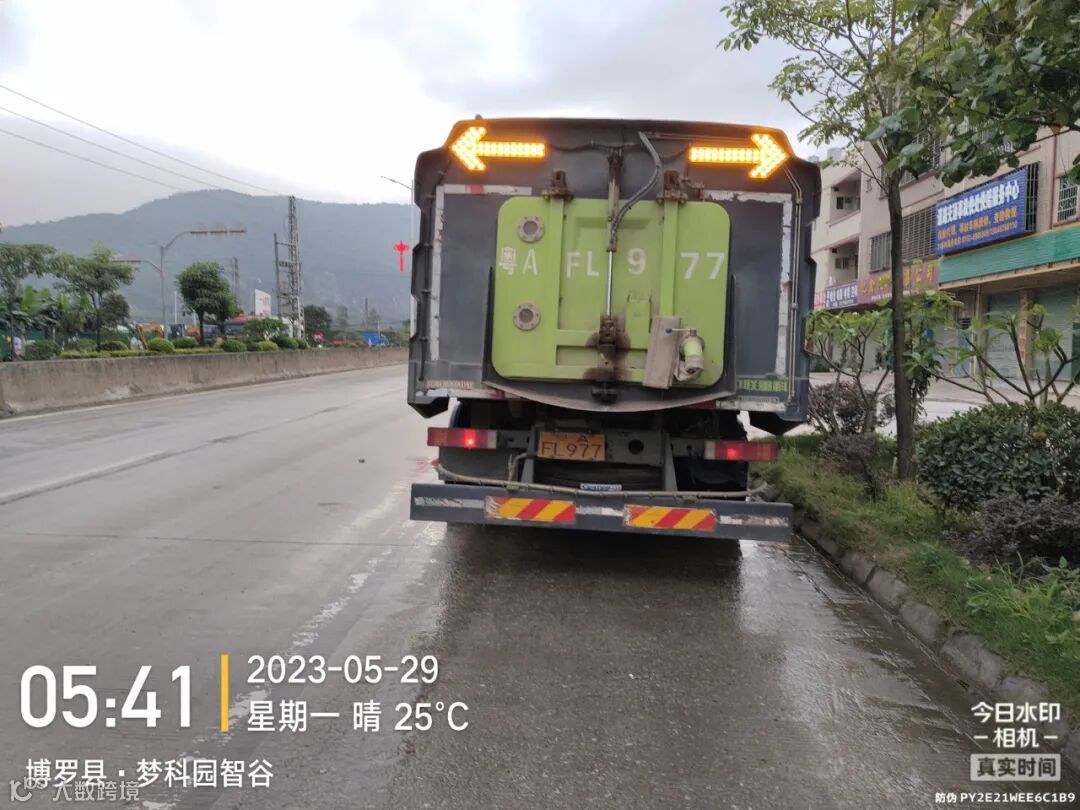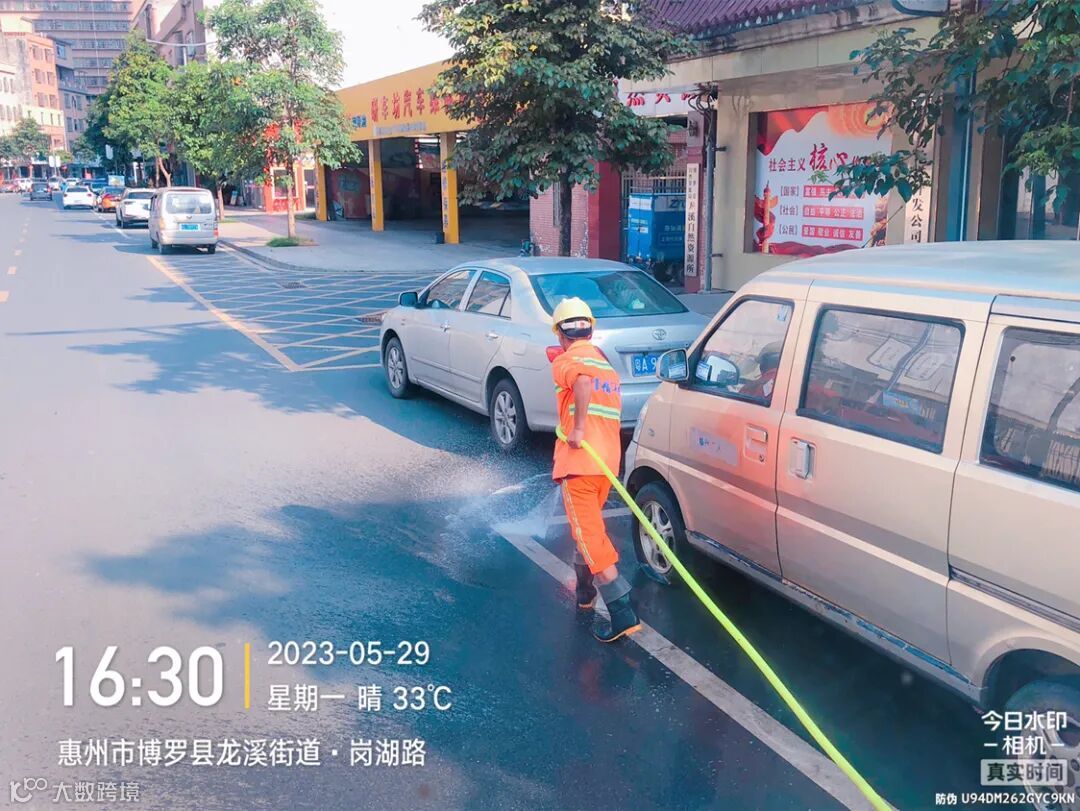 加强镇区和龙桥大道、广汕路的洒水降尘作业。