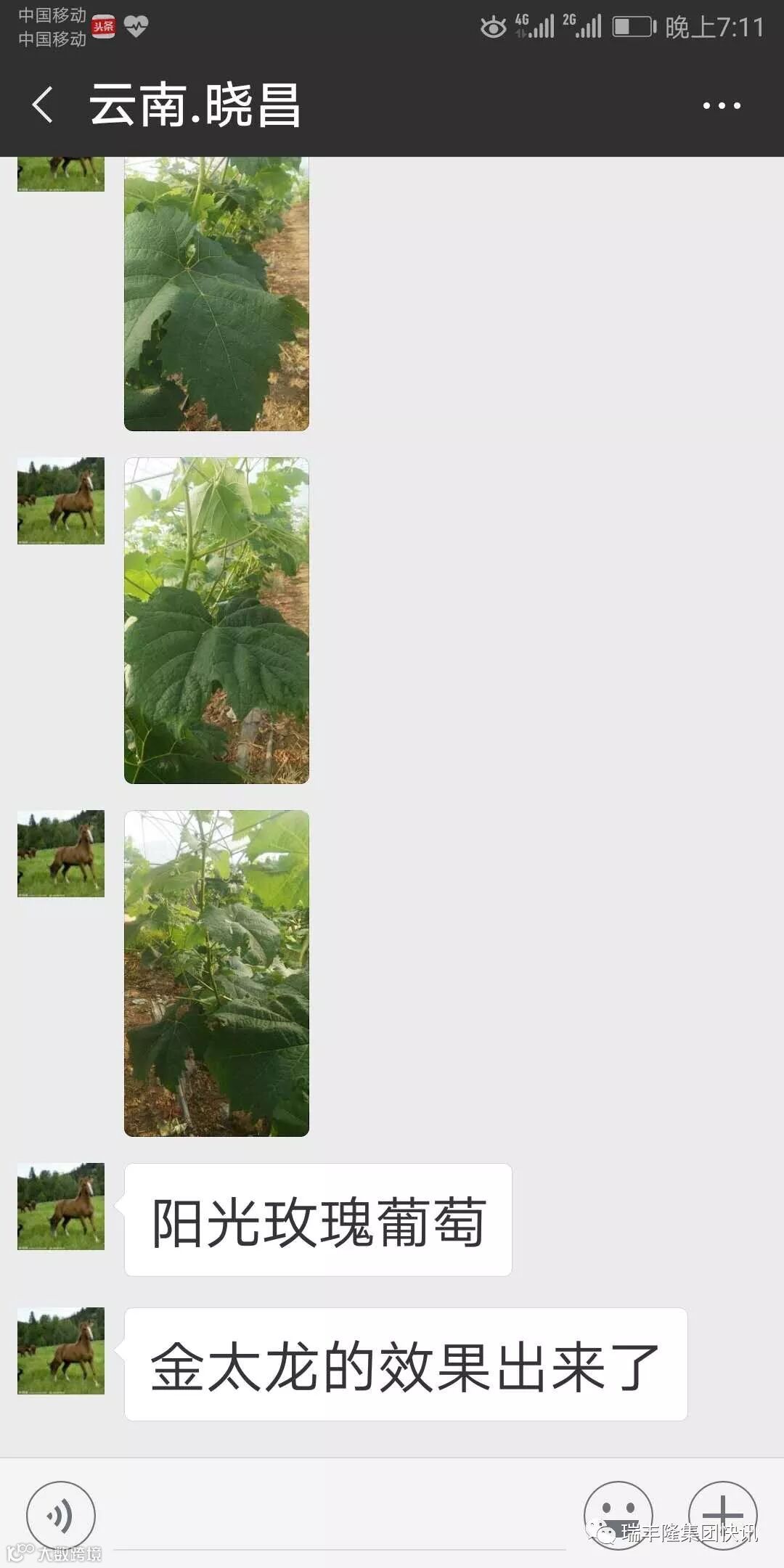 导读:云南市场部阳光玫瑰葡萄使用金太龙追肥宝见效快!颗粒饱满数量多,叶片阔绿长势好!