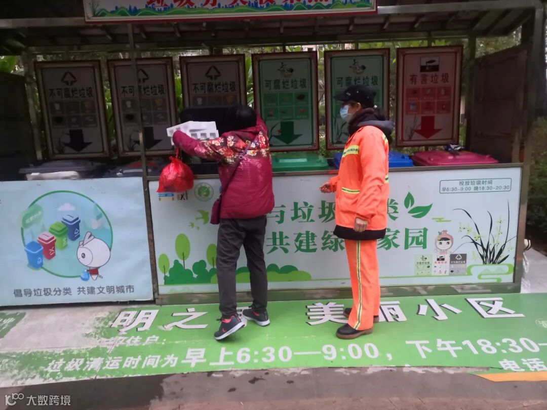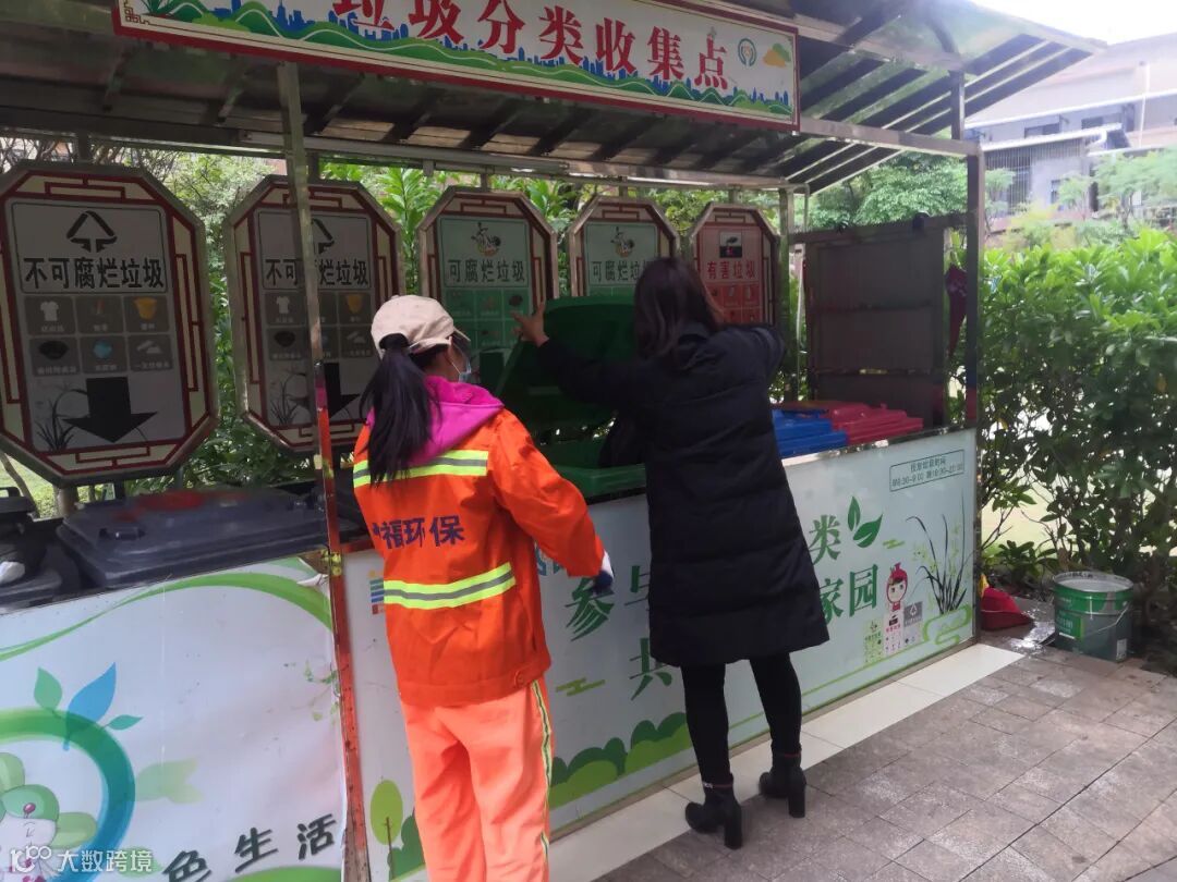 2、垃圾分类人员在各小区守点宣传。