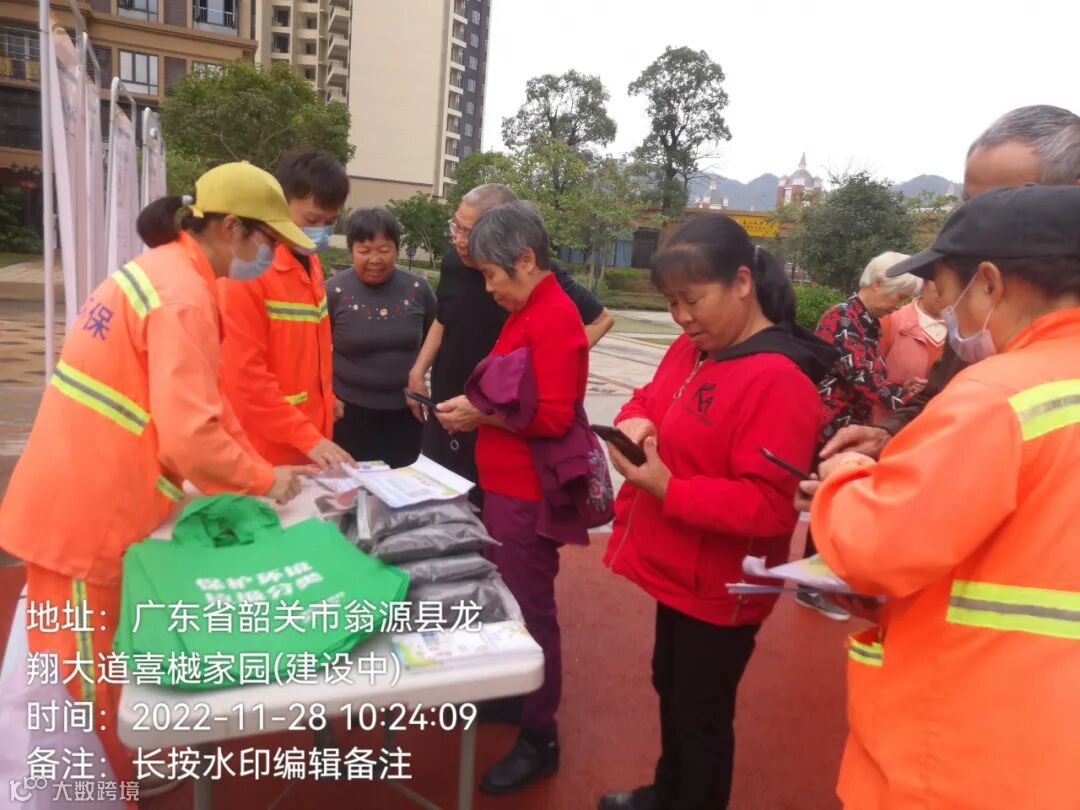 1、28号在龙山水岸开展2022年垃圾分类宣传活动。