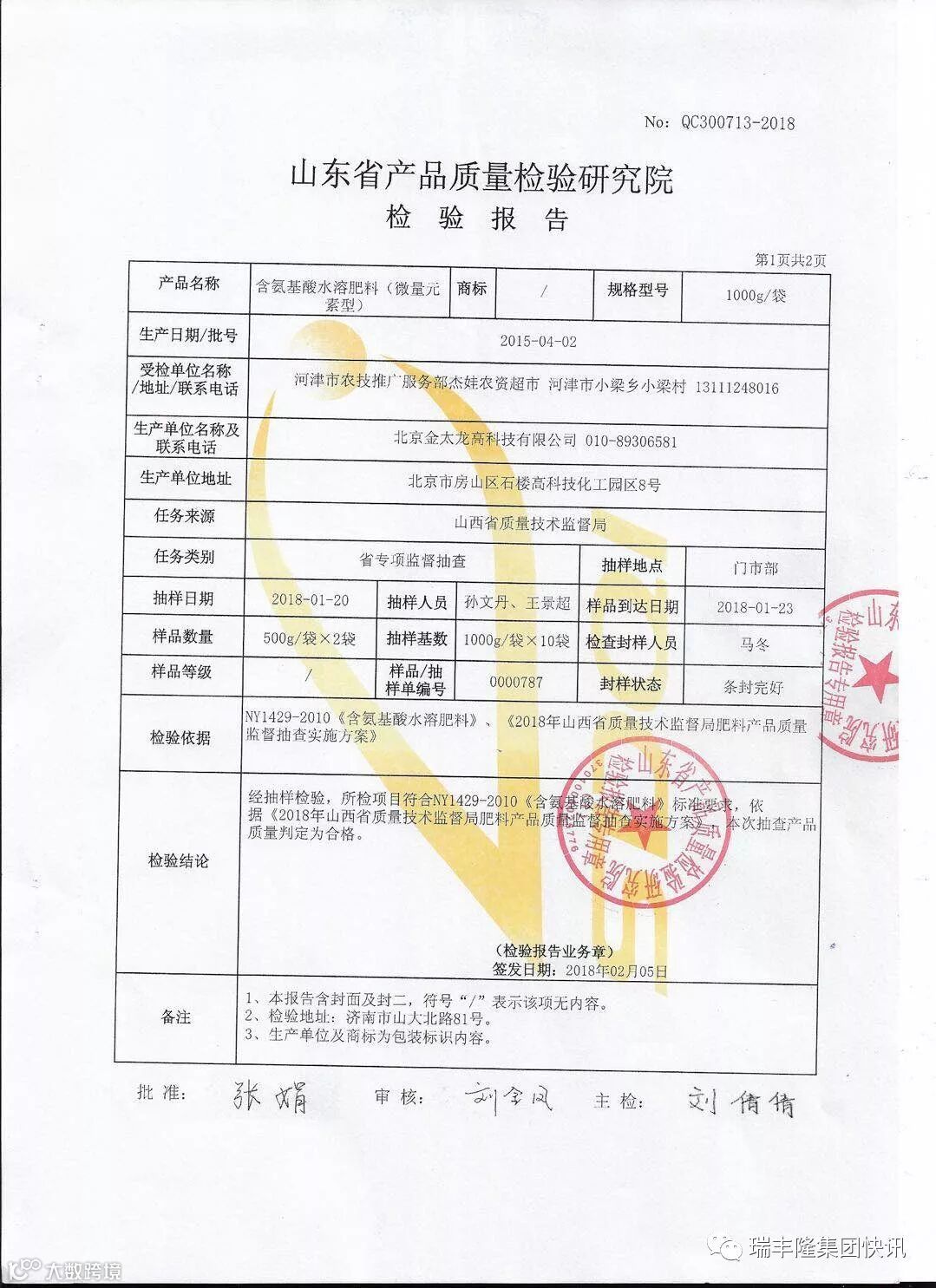 瑞丰隆集团快讯近日,山西省质量技术监督局对市场上售卖的金太龙产品进行了随机的抽查,而且不在当地检验,山西省抽样山东省检验,经过山东省质量监督院检验:金太龙各项指标全部合格!具体抽样地址位于:山西省河津市场。今天正值315消费者权益日,金太龙郑重宣告:金太龙保证每天都是315!打铁还需自身硬!真金不怕火炼——金太龙经得起抽验!