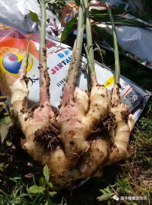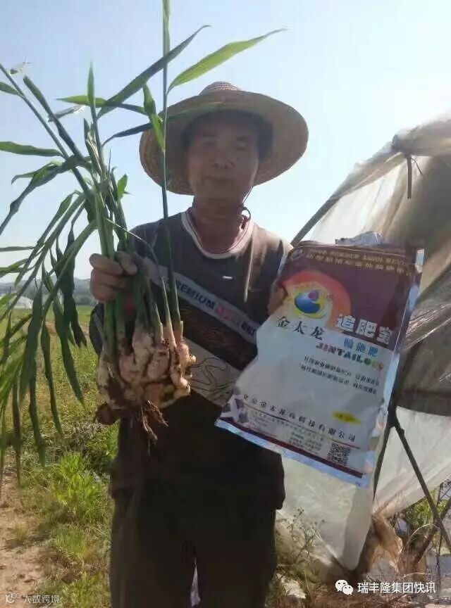 金太龙追肥宝适用作物广泛,一直有口皆碑。江西赣州潭头村使用金太龙喷施仔姜的种植,前后共使用2次,每次都是200克金太龙兑水30斤,从今天效果的比对可以看出:喷施2次金太龙的仔姜叶壮根肥,金太龙的真实效果再获证实!