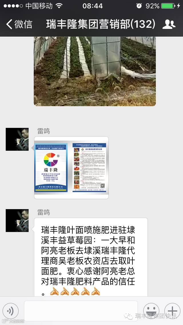 瑞丰隆湖州市场部虽然开辟仅仅几个月,销售火爆却持续进行中,各个用户订单纷至沓来。复合肥、液体肥、冲施肥齐上阵,湖州市场部负责人雷经理谈业务、签合同、收款项,时不时在朋友圈里秀秀货款钞票,引得其他市场部的经理眼红不已~~!其实,销售和零售是一个道理,依托一个规模大有信誉的厂家,既可以让自己尽快成长起来,同时进货、打款、销售、广告都可以放心,产品质量有保证,另外,行业内的信息流动是最快的,交几个做肥料的朋友,受益无穷!选择瑞丰隆的雷玉明经理,好样滴!