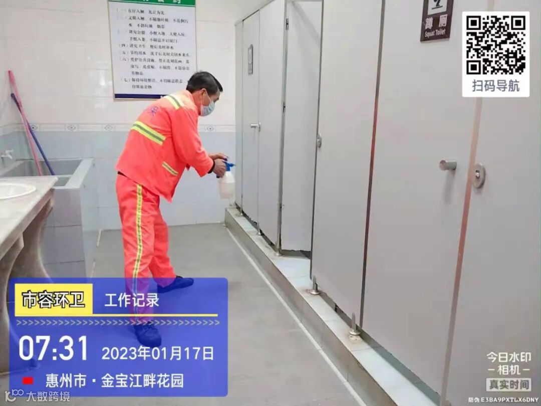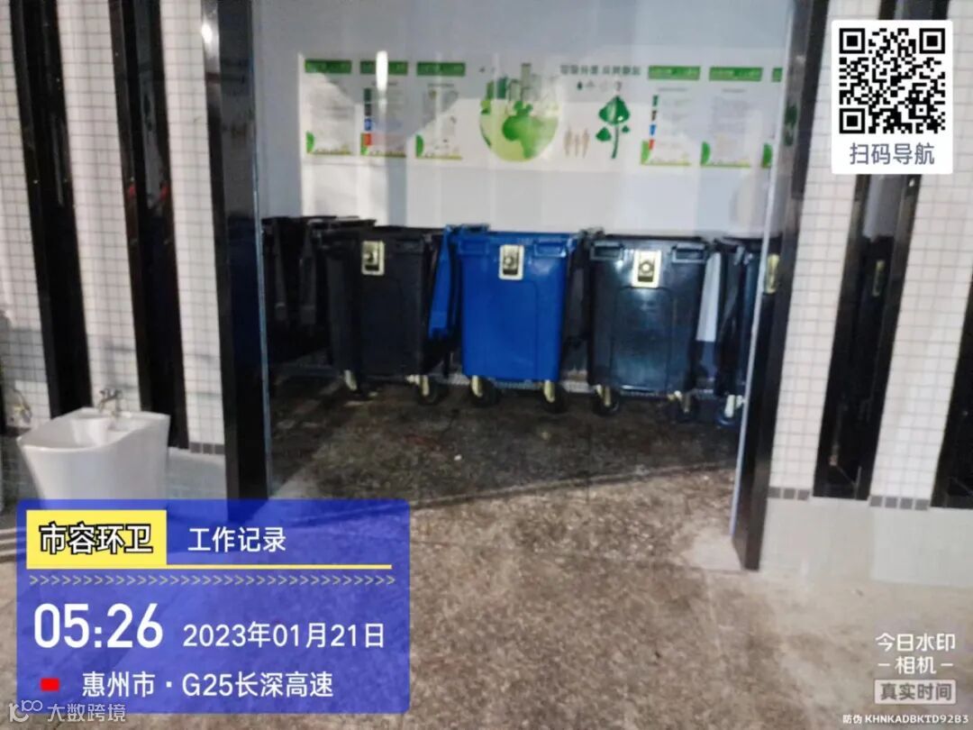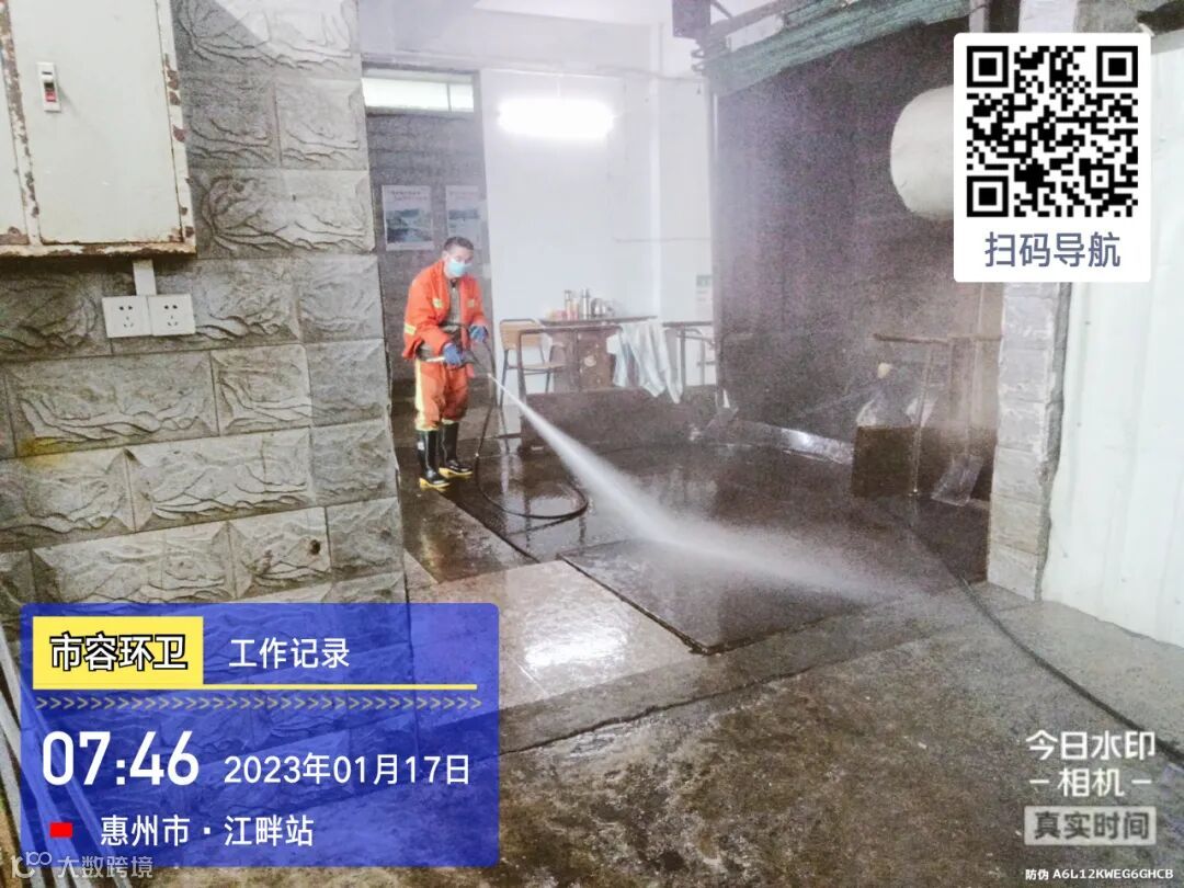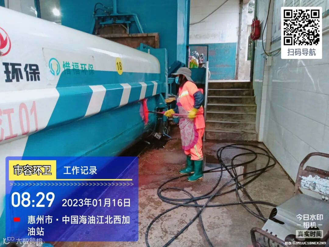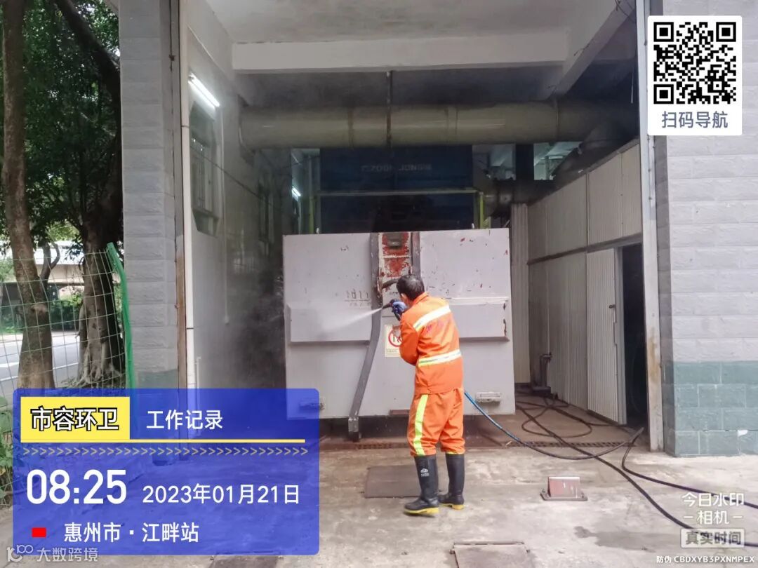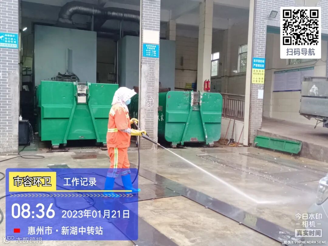 中转站/公厕日常作业及维护,每日两次以上高压冲洗并喷雾消毒站内外地面及箱体