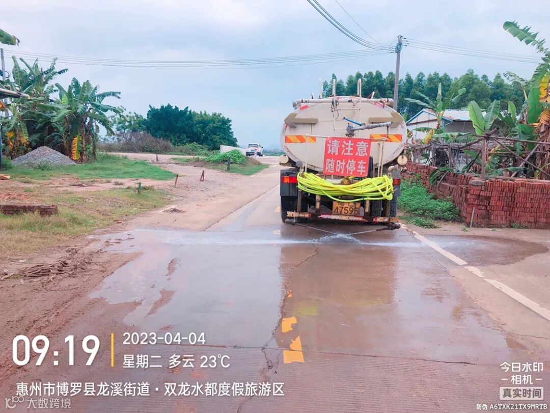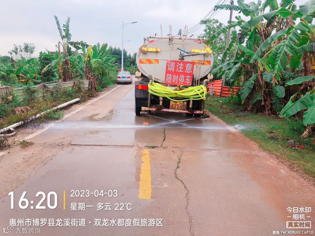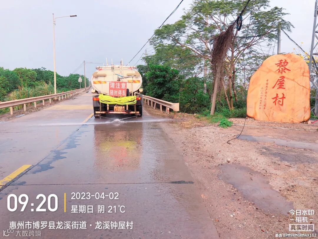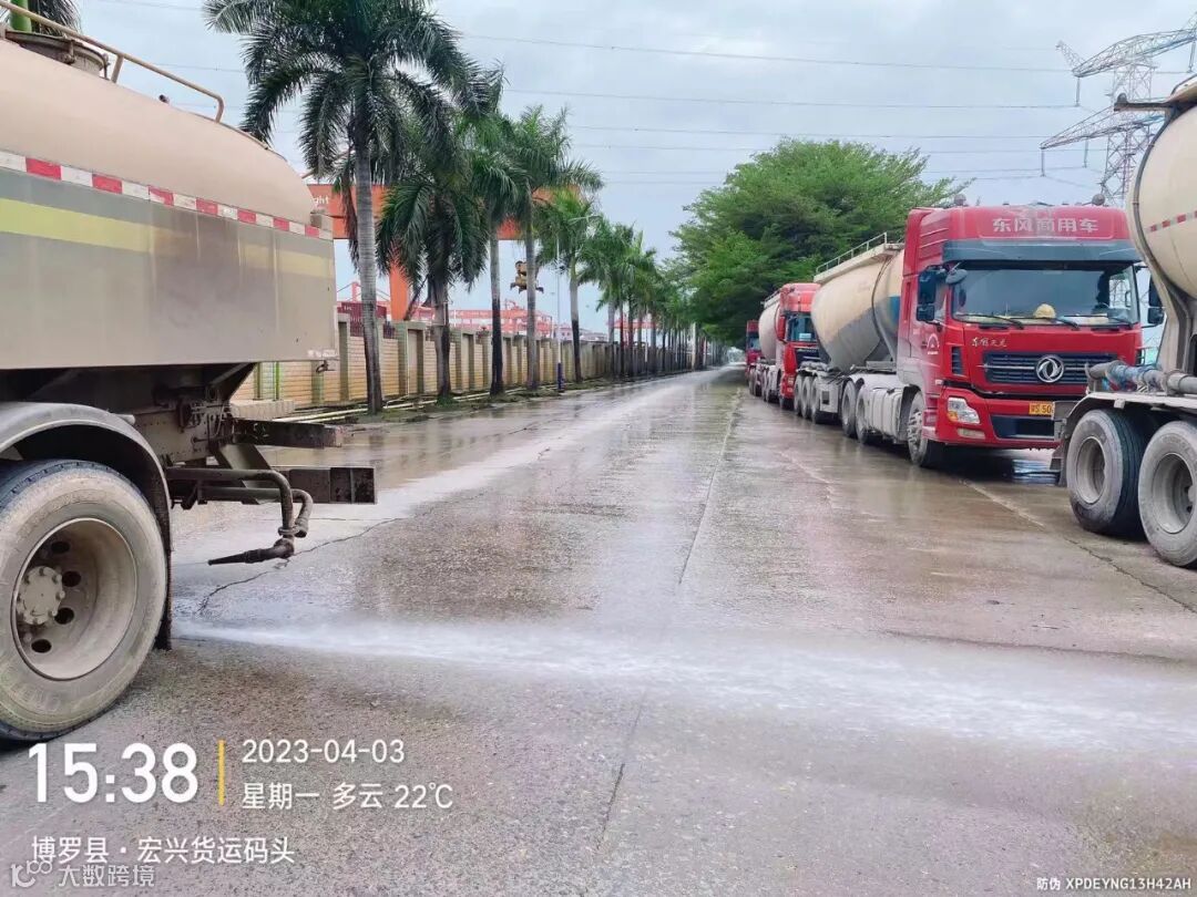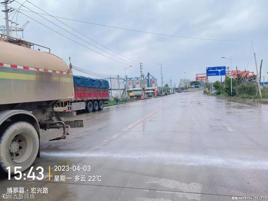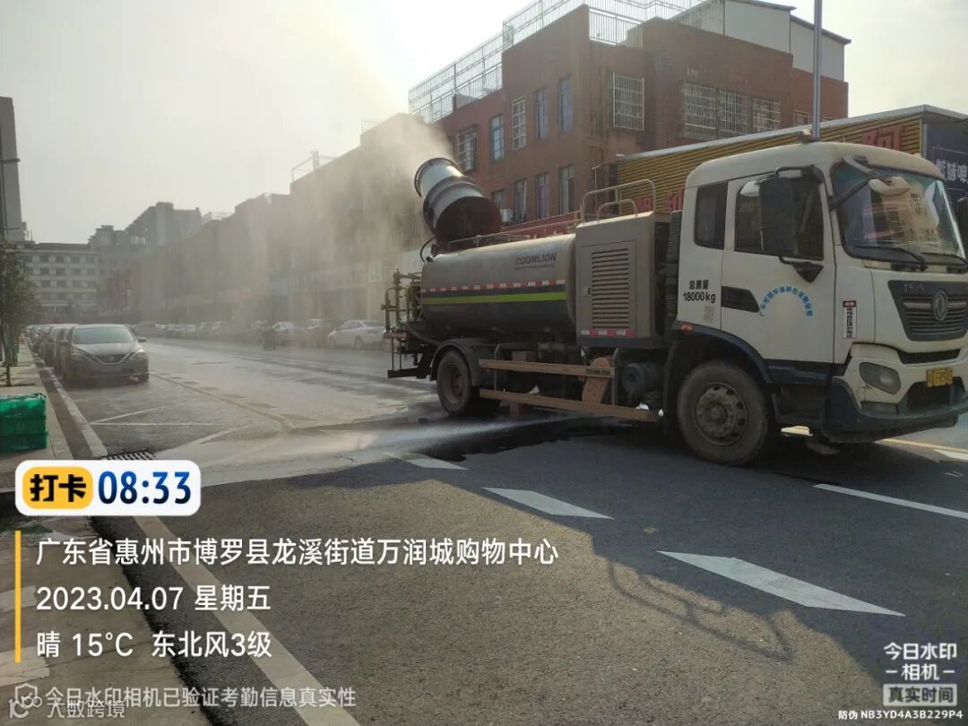 加强镇区和龙桥大道、广汕路的洒水降尘作业。