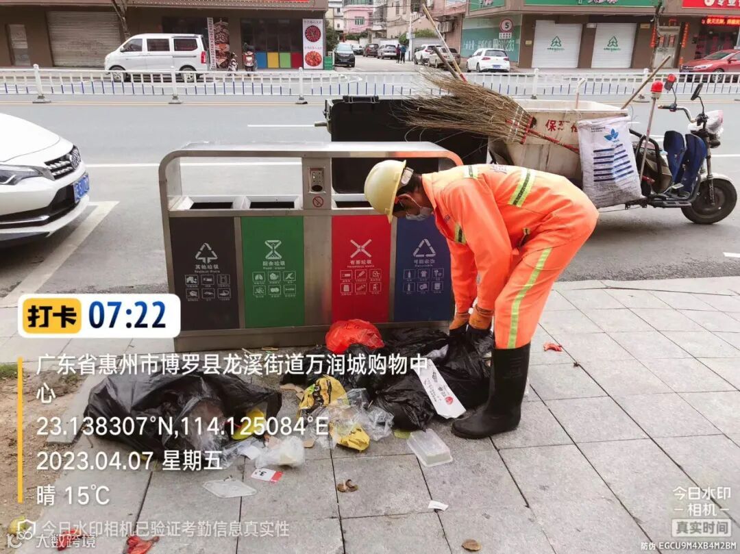 “门前三包”、垃圾入桶劝导。