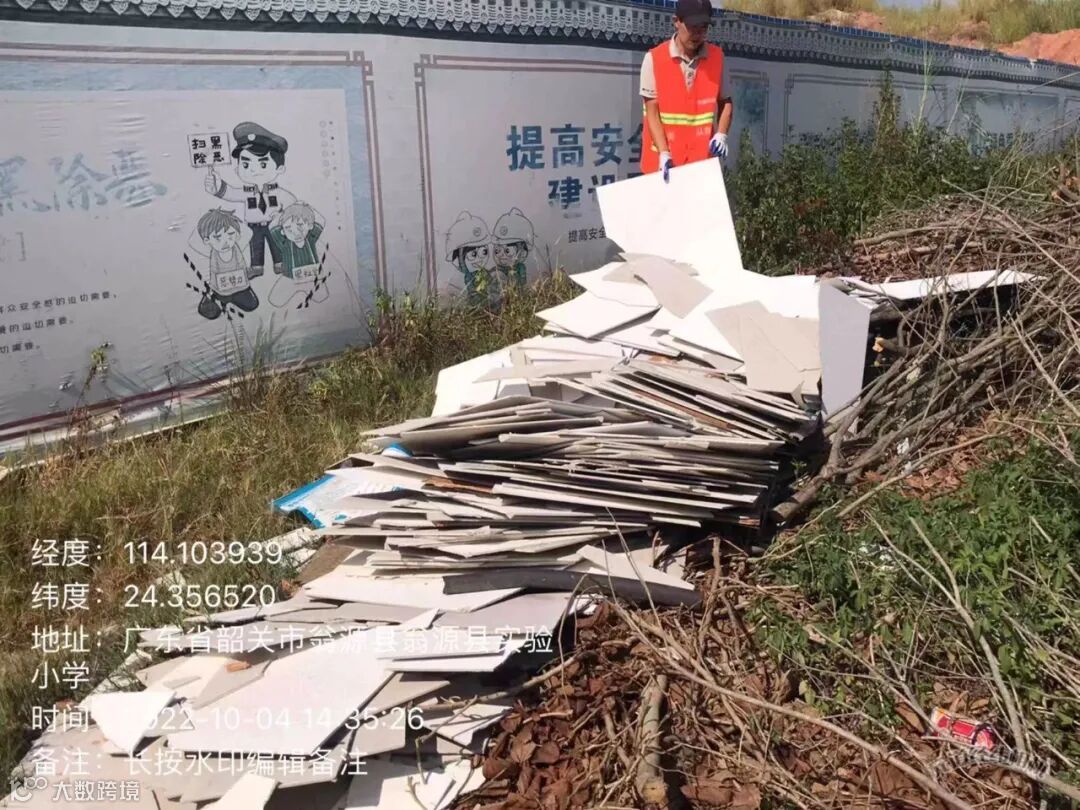 巡查清理城中村边乱倒装修白色垃圾