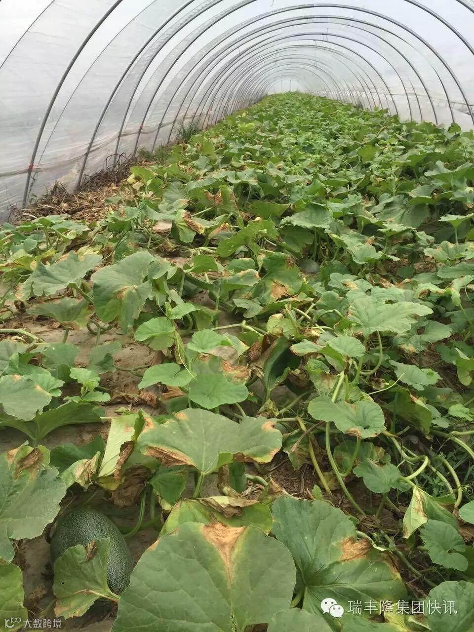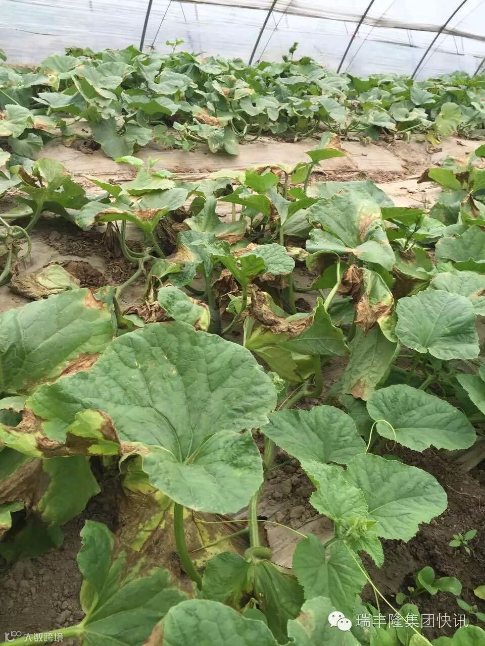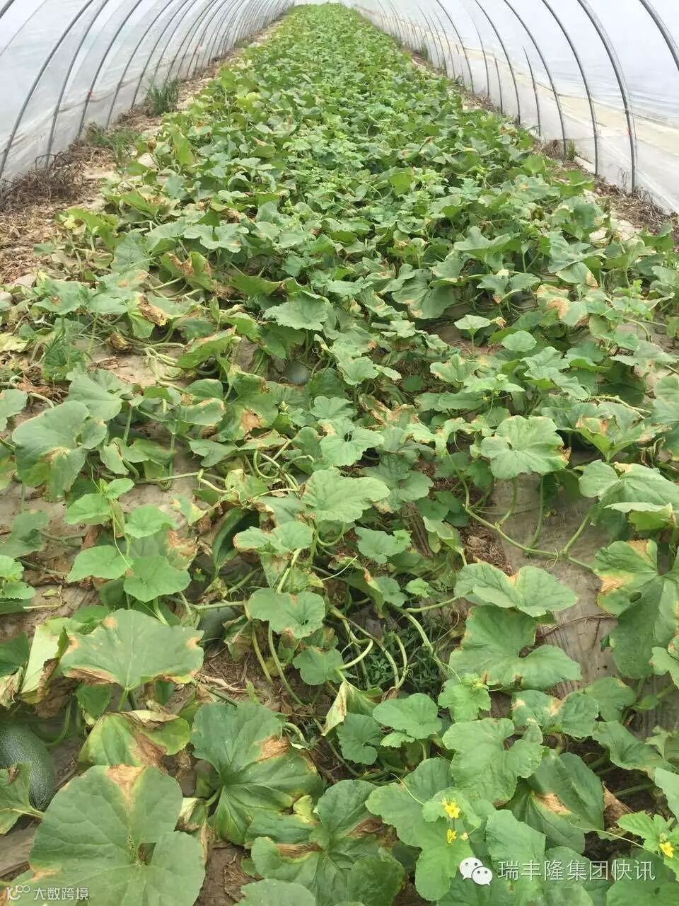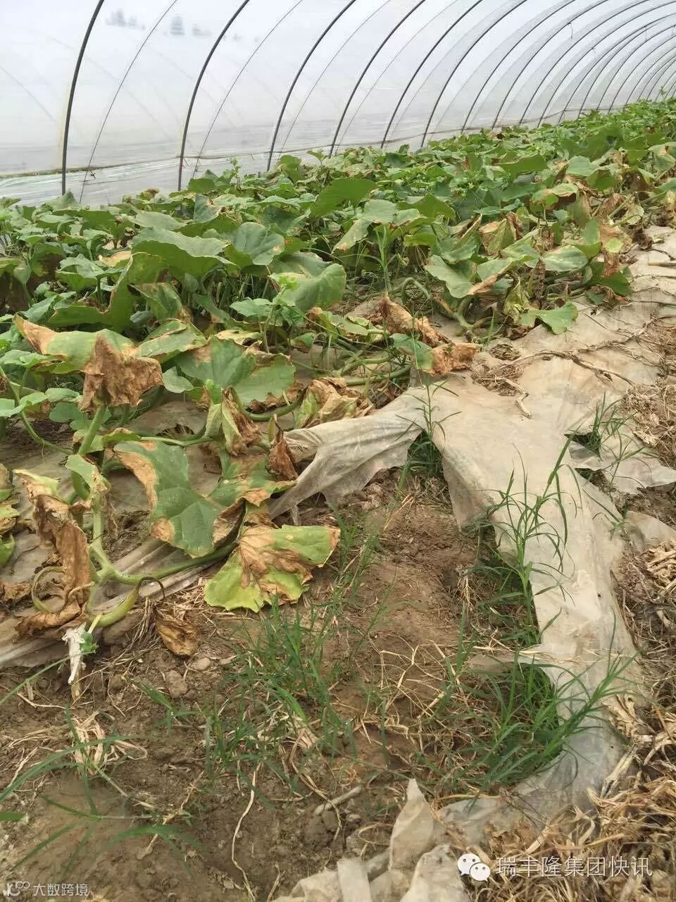 没有使用金太龙的哈密瓜(叶片发黄枯萎)