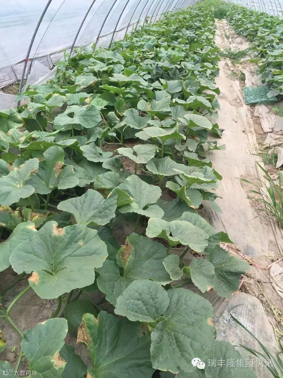 使用金太龙后的哈密瓜(叶片变绿舒展)