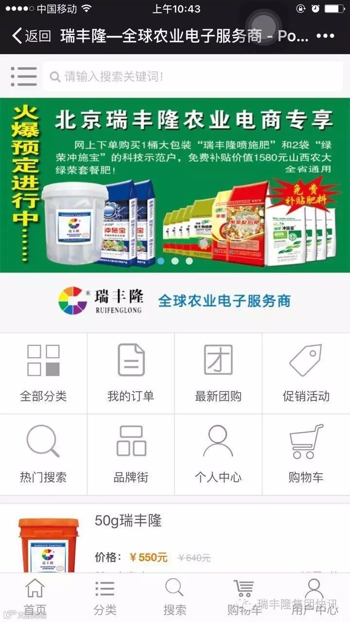 近年来随着农村电商平台的广泛推广,农村电商平台已经成为农资营销必不可少的销售利器;其电农资商的优点:(减少中间市场环节、降低成本、实现相对低价)也即将成为广大农民朋友购买农资产品的首选平台!今天,让小编带您进入“瑞丰隆—全球农业电子服务商”一起去体验一下吧!