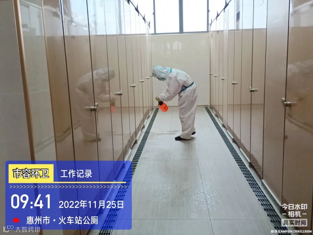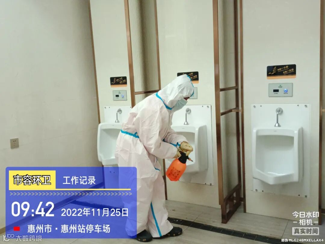中转站/公厕日常作业及维护,每日两次以上高压冲洗并喷雾消毒站内外地面及箱体