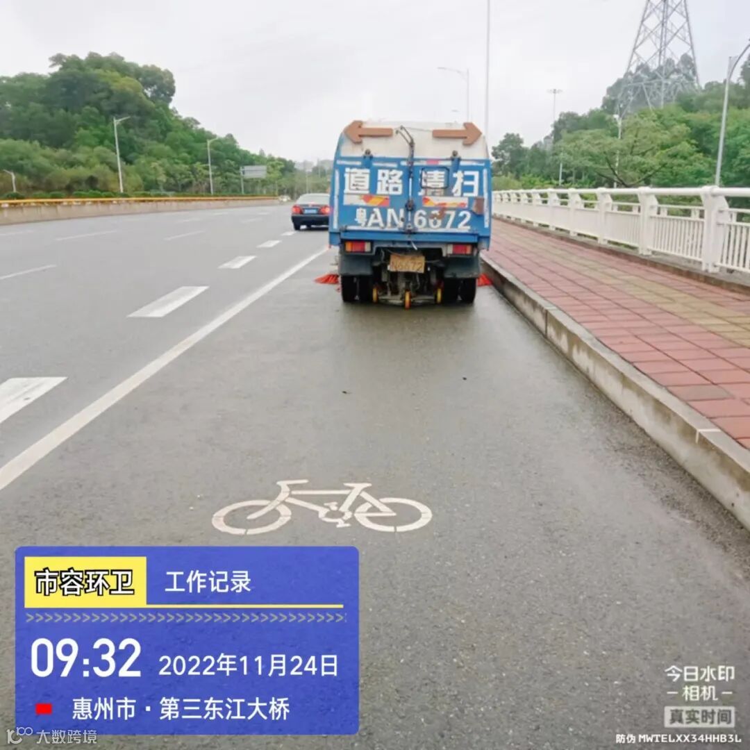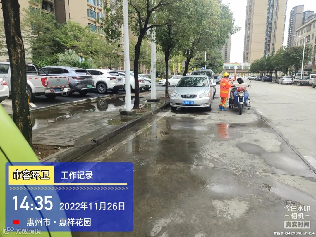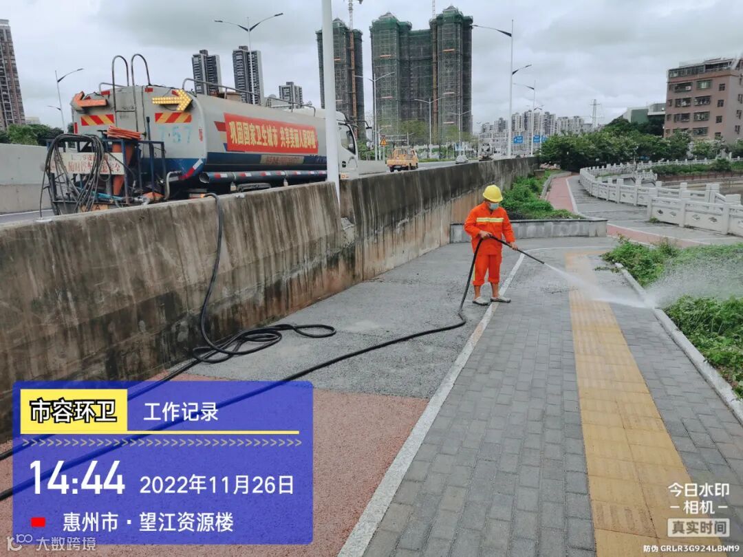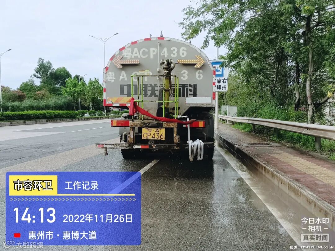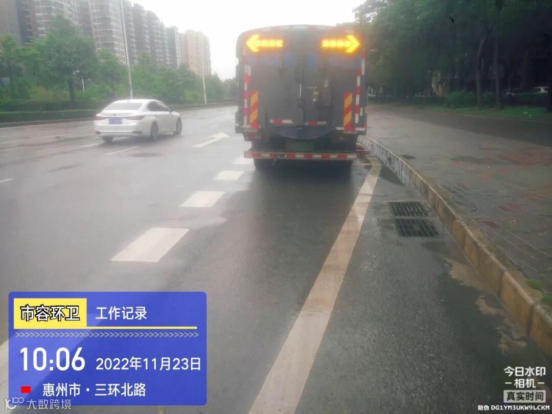 2、机械化保洁利用雨天加强路段顽固污渍的冲洗清理作业,并配合人工进行雨后慢车道泥沙清理;