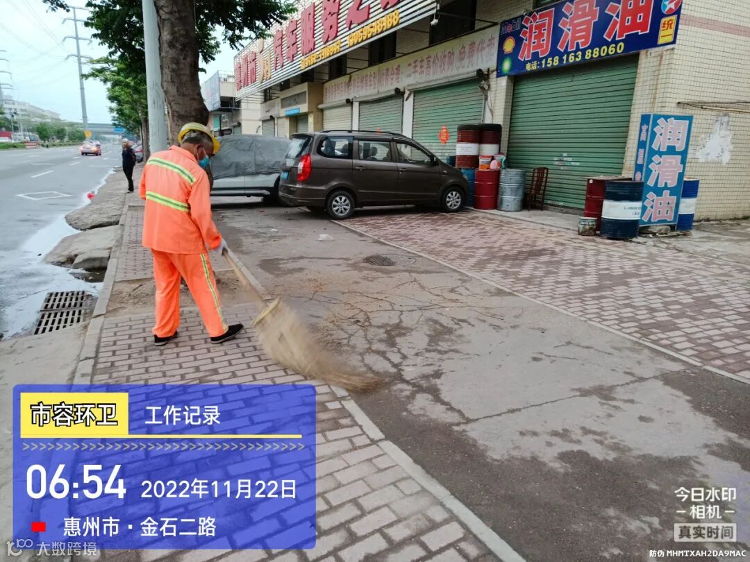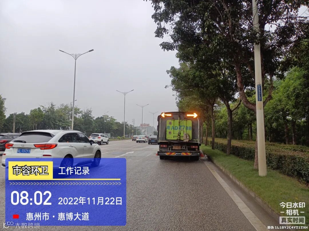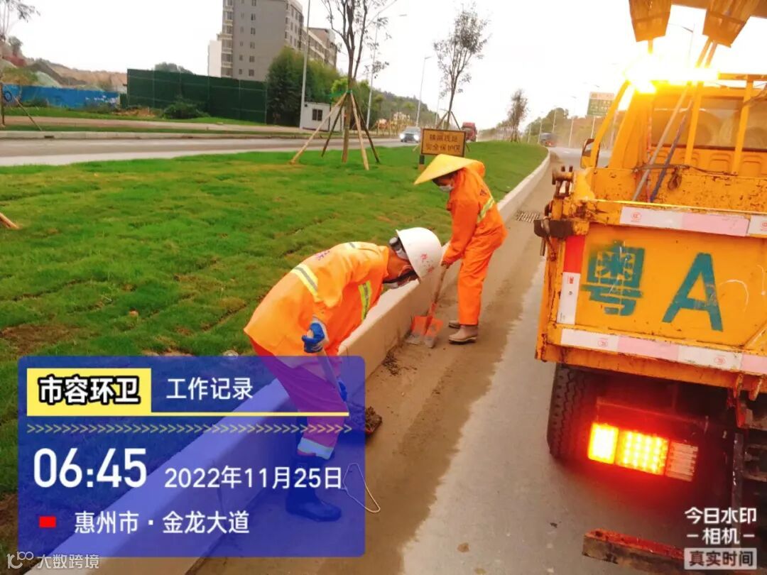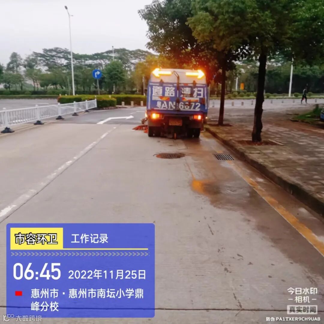 2、机械化保洁利用雨天加强路段顽固污渍的冲洗清理作业,并配合人工进行雨后慢车道泥沙清理;