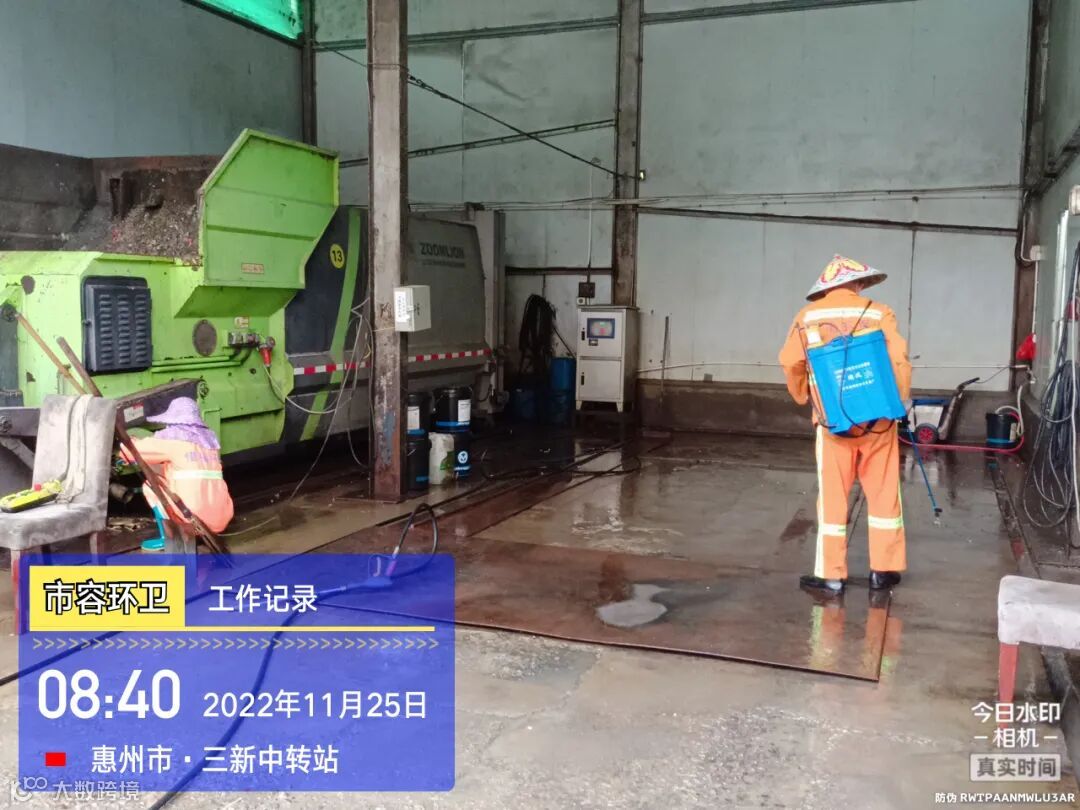 4、中转站日常管理及维护,每日定时进行站内高压清洗及消杀作业;