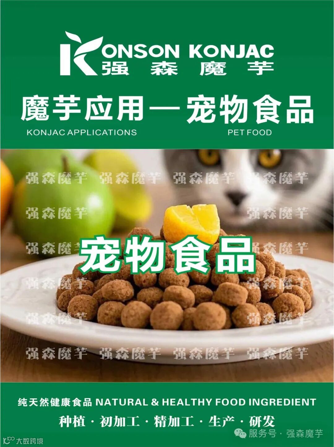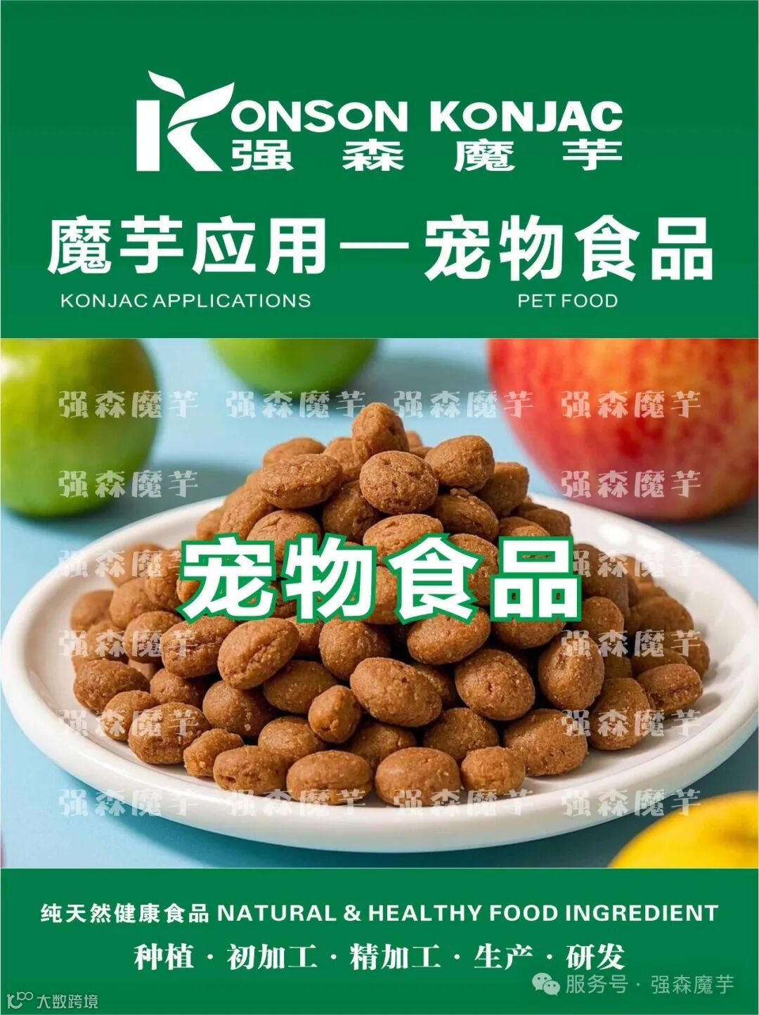 魔芋粉在宠物食品中有多种应用,以下是一些常见的方面: