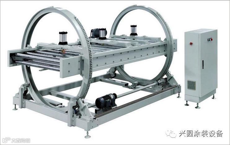 本机的功能是将板材180度翻转,以适应正反双面涂装、叠垛、覆膜等工艺需求,本机采用猪笼式结构,占地紧凑,生产效率高。