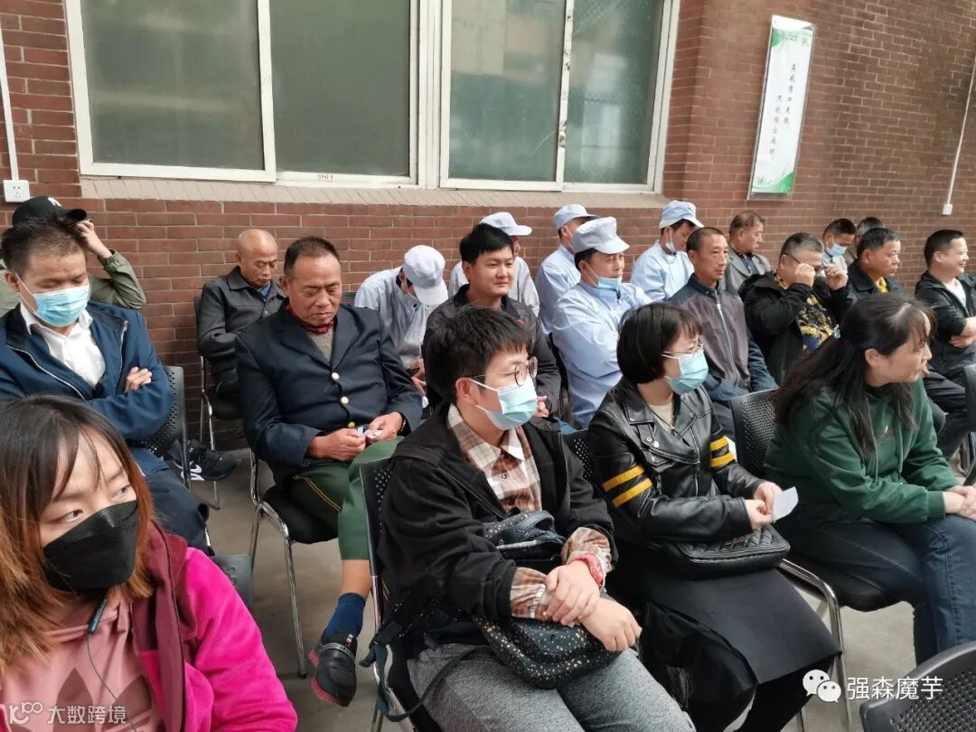 在工厂仓库门前召开“阿米巴哲学落地”