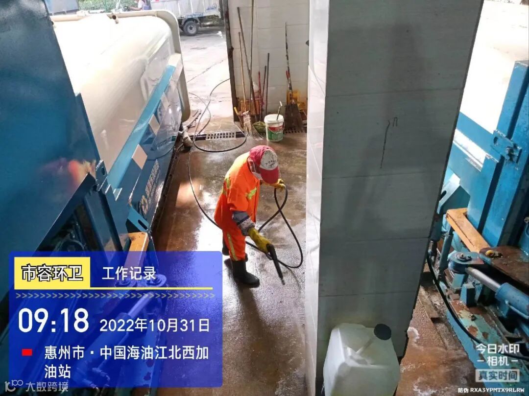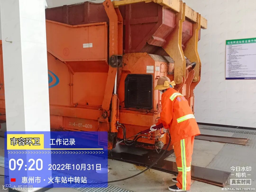 中转站/公厕日常作业及维护,每日两次以上高压冲洗并喷雾消毒站内外地面及箱体