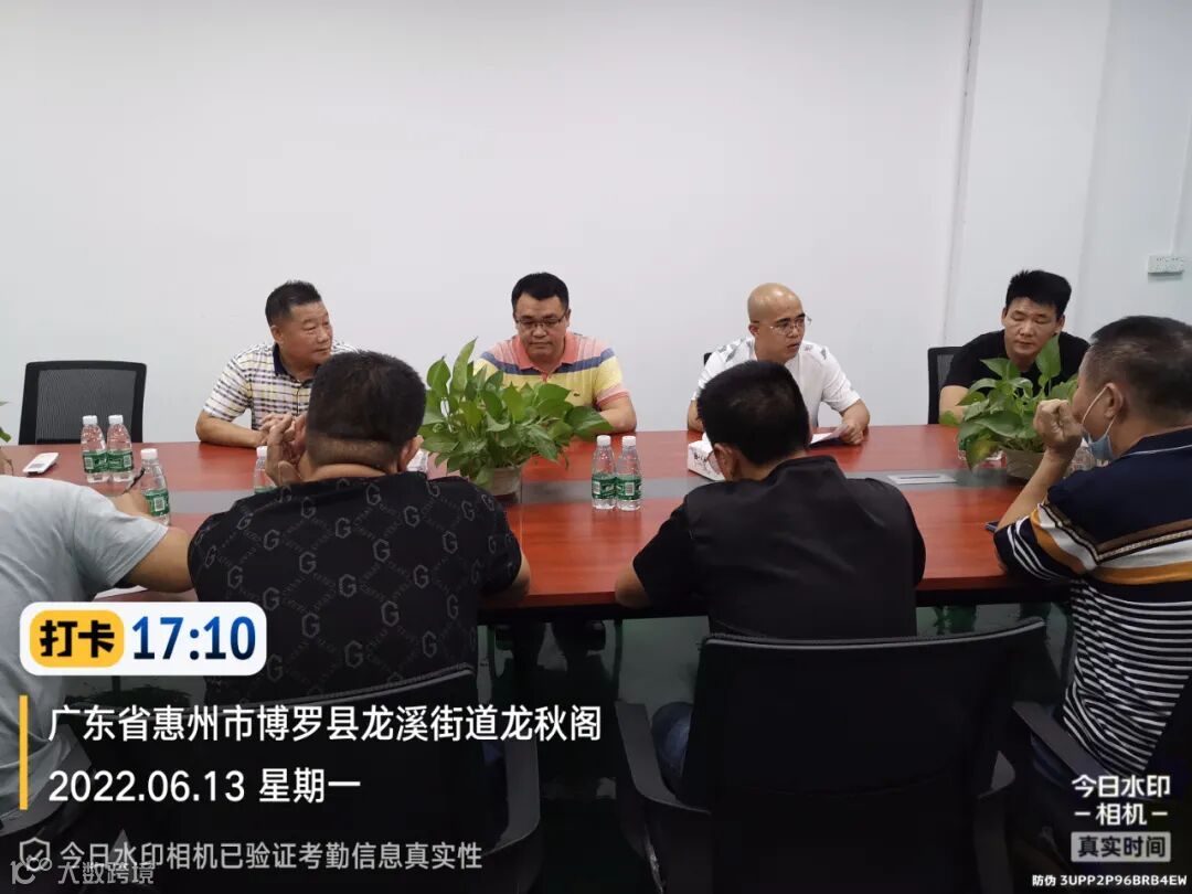 (县市容环境卫生事务中心工作组刘股及工作组成员、惜福公司靳总及龙溪项目管理人员召开工作会议,重点对标环境整治专项行动工作落实情况及布置下阶段的工作安排,靳总、刘股作工作指示。)