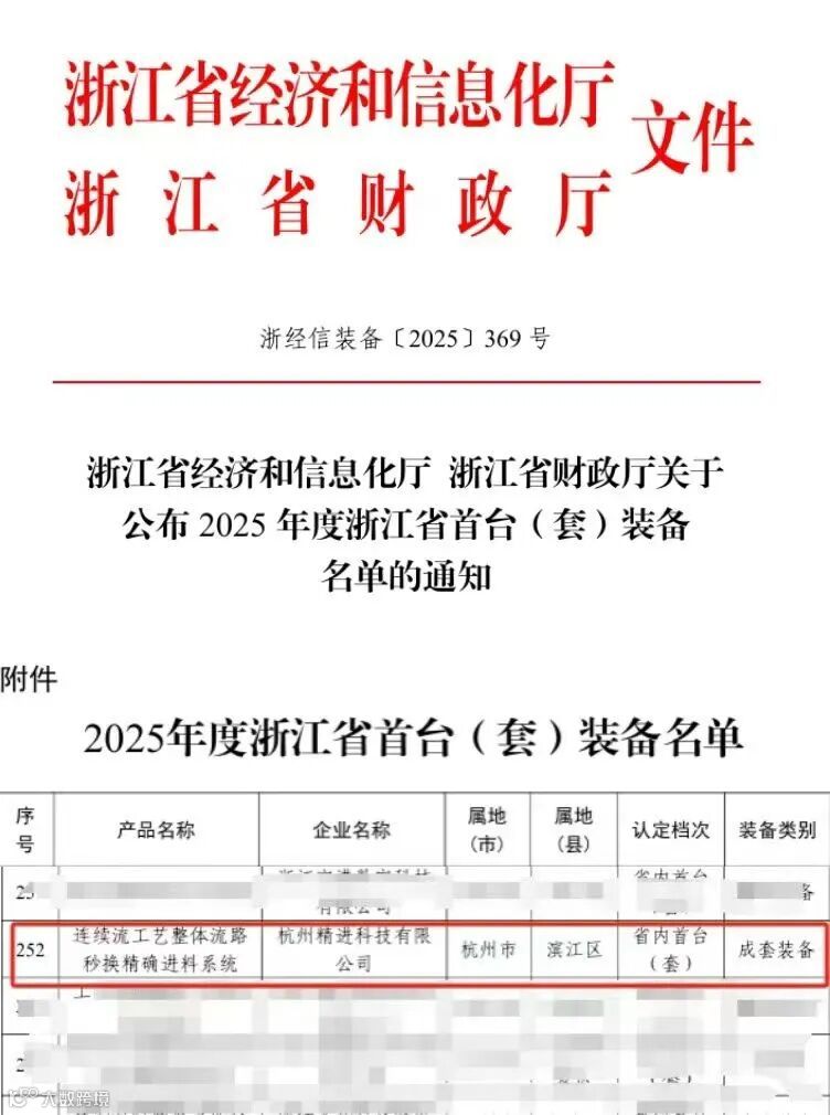 2025年度浙江省首台(套)装备认定结果完成公示,我司自主研制的“连续流工艺整体流路秒换精确进料系统”成功入选,标志着我司的技术突破再获权威认可!