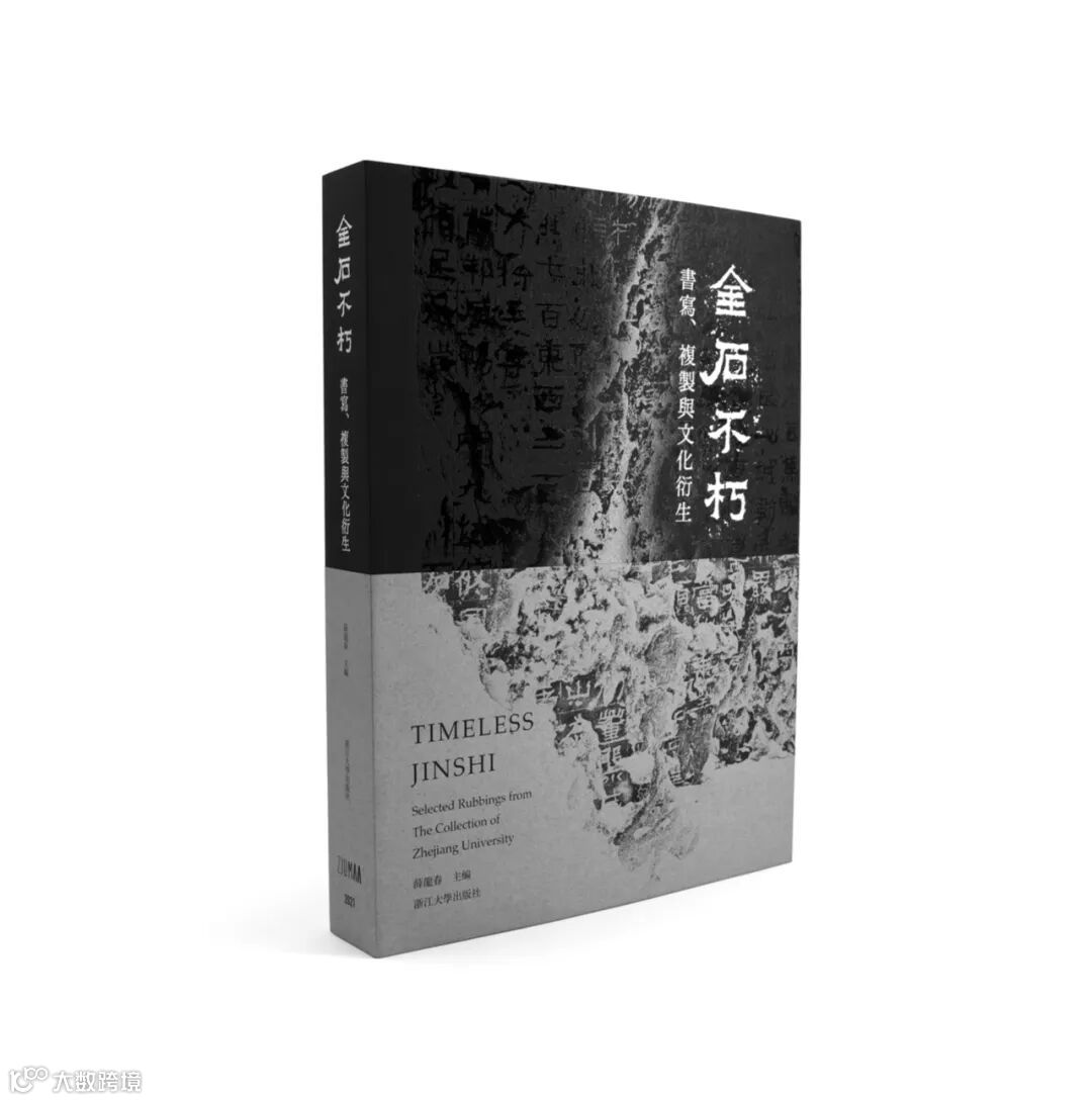比如《金石不朽》这本书以碑帖拓片为主,书籍设计整体色调以黑色为主,呈现出拓片给人的直观印象。护封采用是一款韧性和黑度都极好的黑卡(再生原黑)。在护封正面将本次展品之一──《广武将军碑》拓片反相烫黑金,模拟碑刻效果;在反面满版印银,折叠过来的拓片部份与碑刻相连接,呈现出碑刻与拓片的对比效果。选择这款再生原黑纸,主要原因是它足够黑,黑度纯粹深邃,且质感不错,烫印,折叠都没有问题。