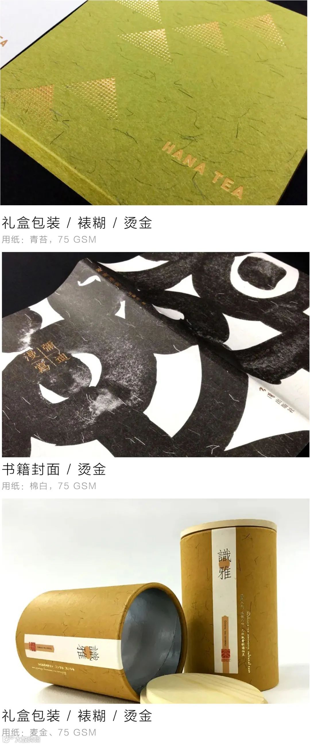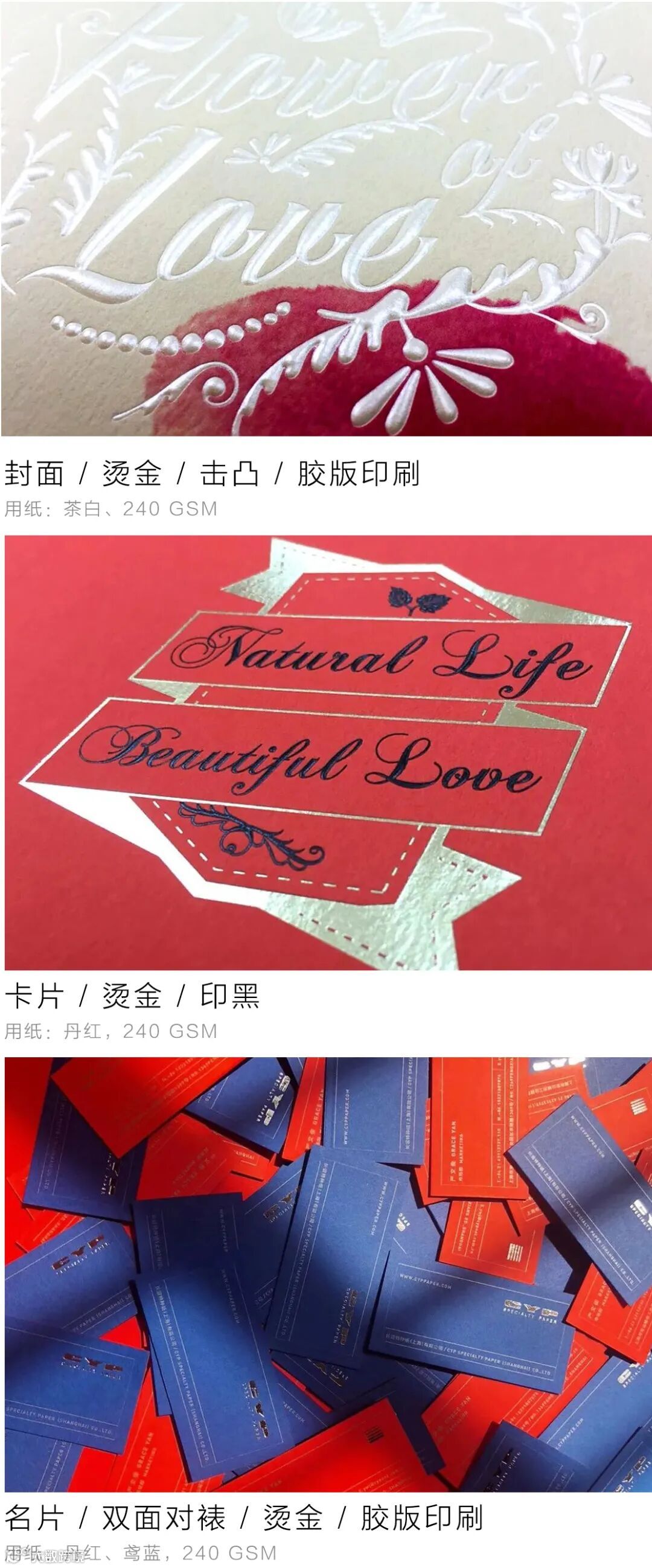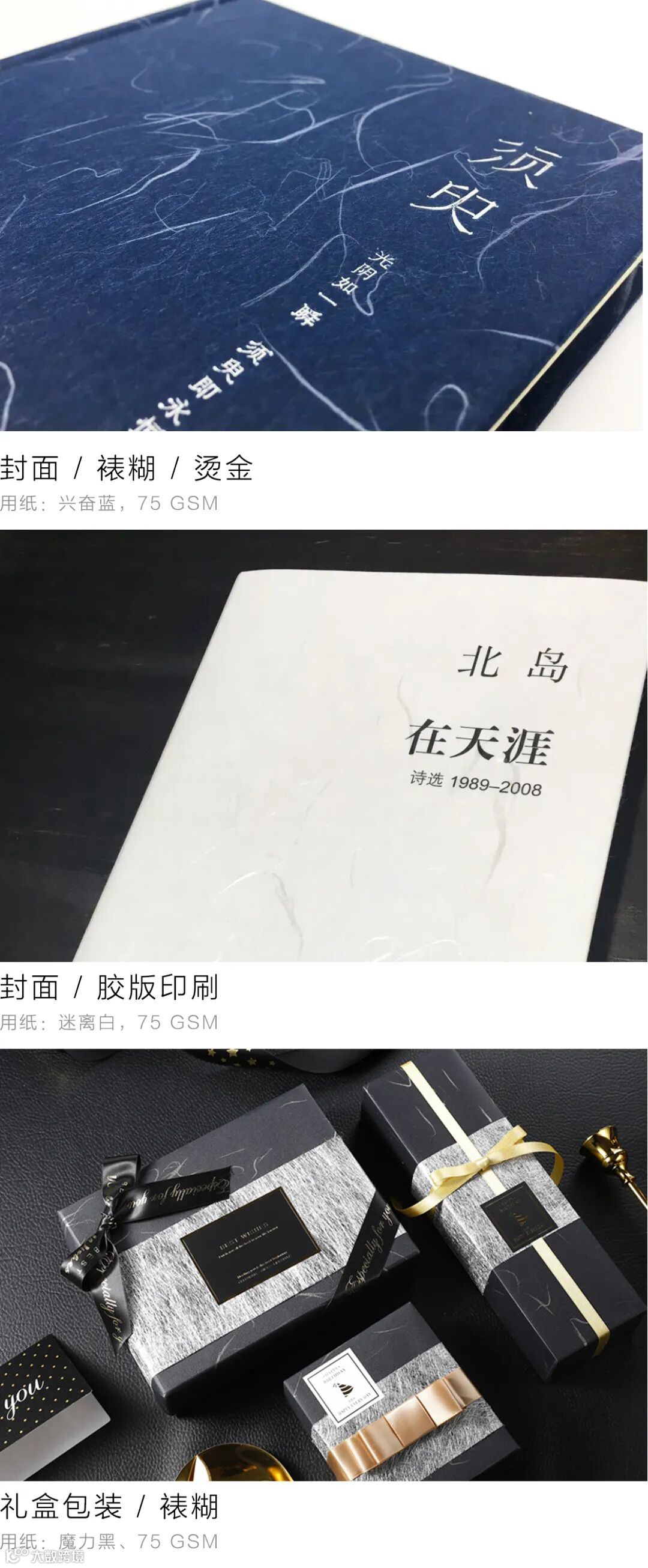水瑟纸是由特殊长纸浆纤维制成的高级印刷纸张,松厚度及挺度极佳,手感厚实,纹理低调自然,尽显优雅,可完美呈现各类印刷及烫金等效果。
