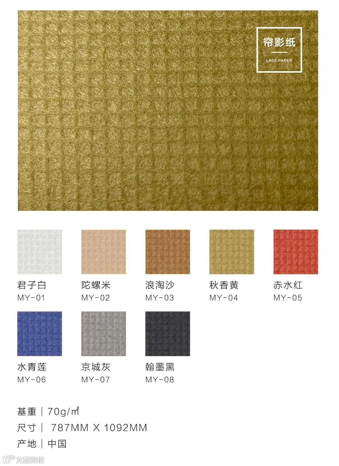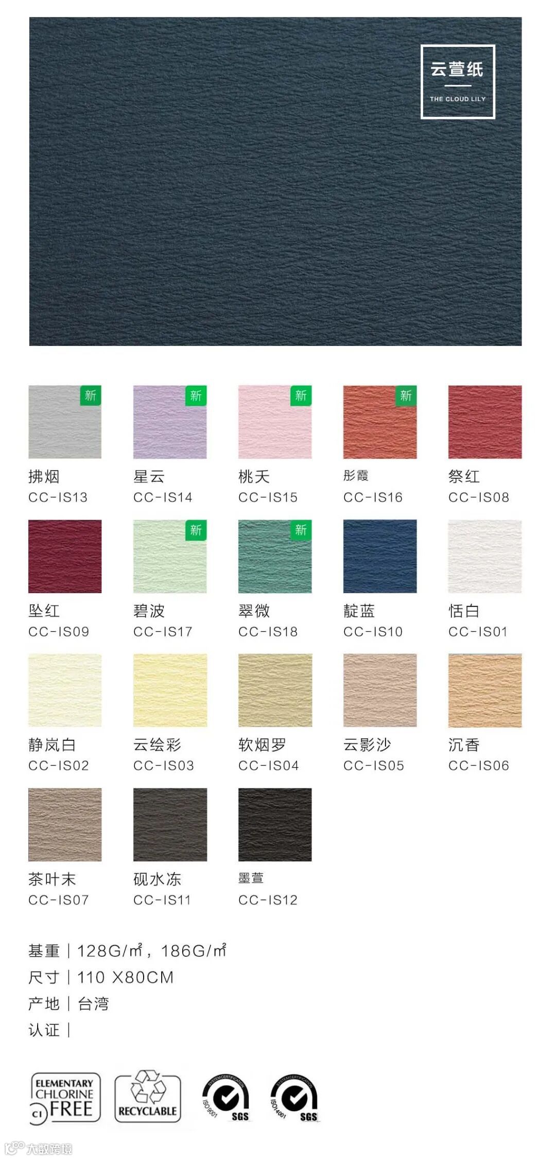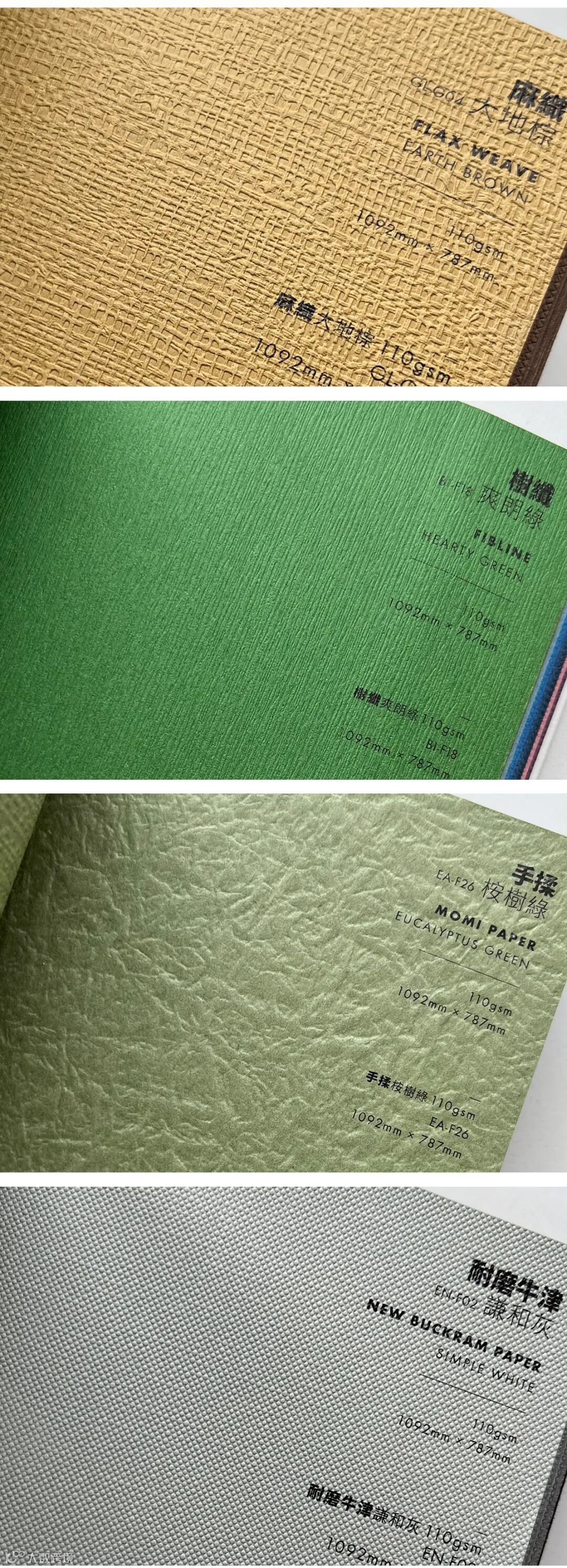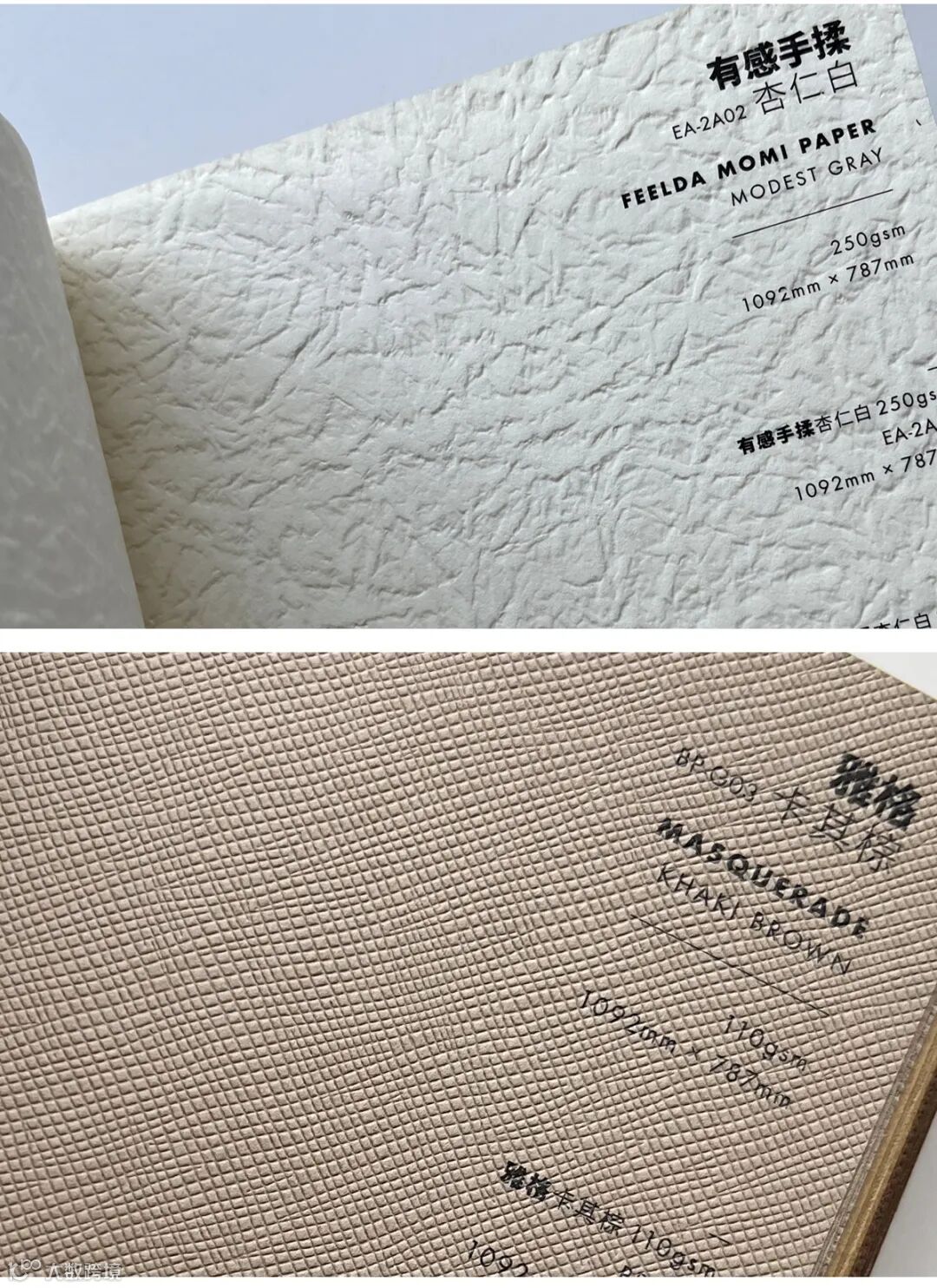 选用100%优质天然木浆,秉持CYP高品质制纸工艺,为设计提供更多选择自由。多种款经典纹理、色彩。 纹理分别又雅格、树纤、有感树纤、麻纤、手揉、有感手揉、耐磨。