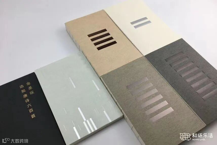 草木纸触感温和、纯粹,设计师力求把纸张独特的质感品性与山水精神相融合,表现山水清音,平淡天真,因此采用了特种东海制纸的独特工艺,在纸张中勾勒出自然起伏的肌理,似有非有的抽象性线条也是随性而出,犹如山水画虚实相生的意境,引人遐思。