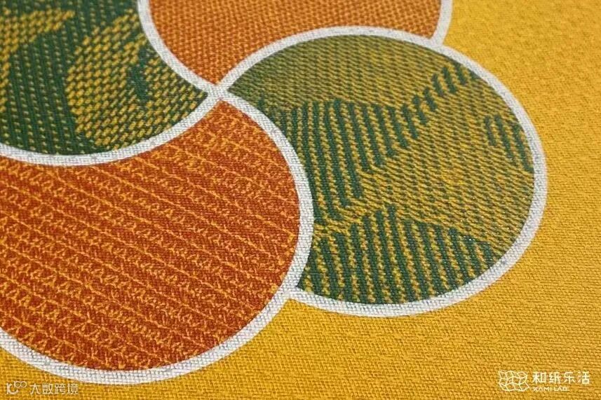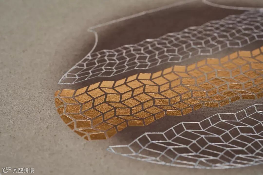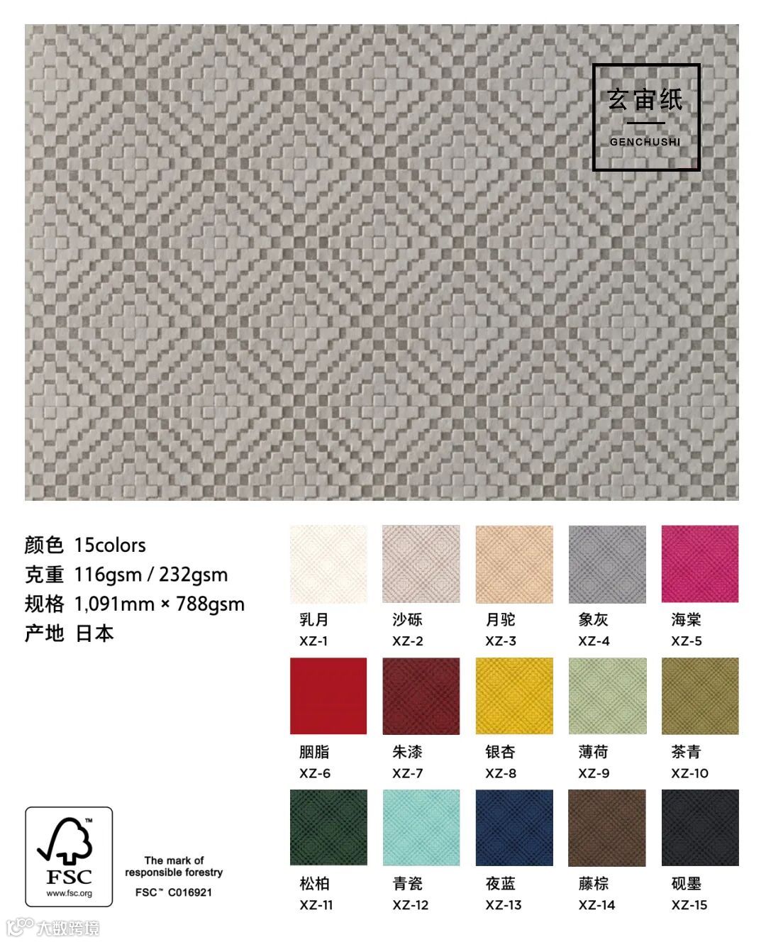 玄宙纸用现代几何图形表现传统吉祥花纹,图案连续反复地排列,看上去像绽放的花朵,也好似精美的编织物,寄托着东方文化中吉祥如意、连绵不息的美好愿望。而要实现这特别的质感,需要突破传统,采用特种东海制纸独家工艺,触感错落有致,视觉上张弛起伏,表现出富有节奏的韵动美感。
