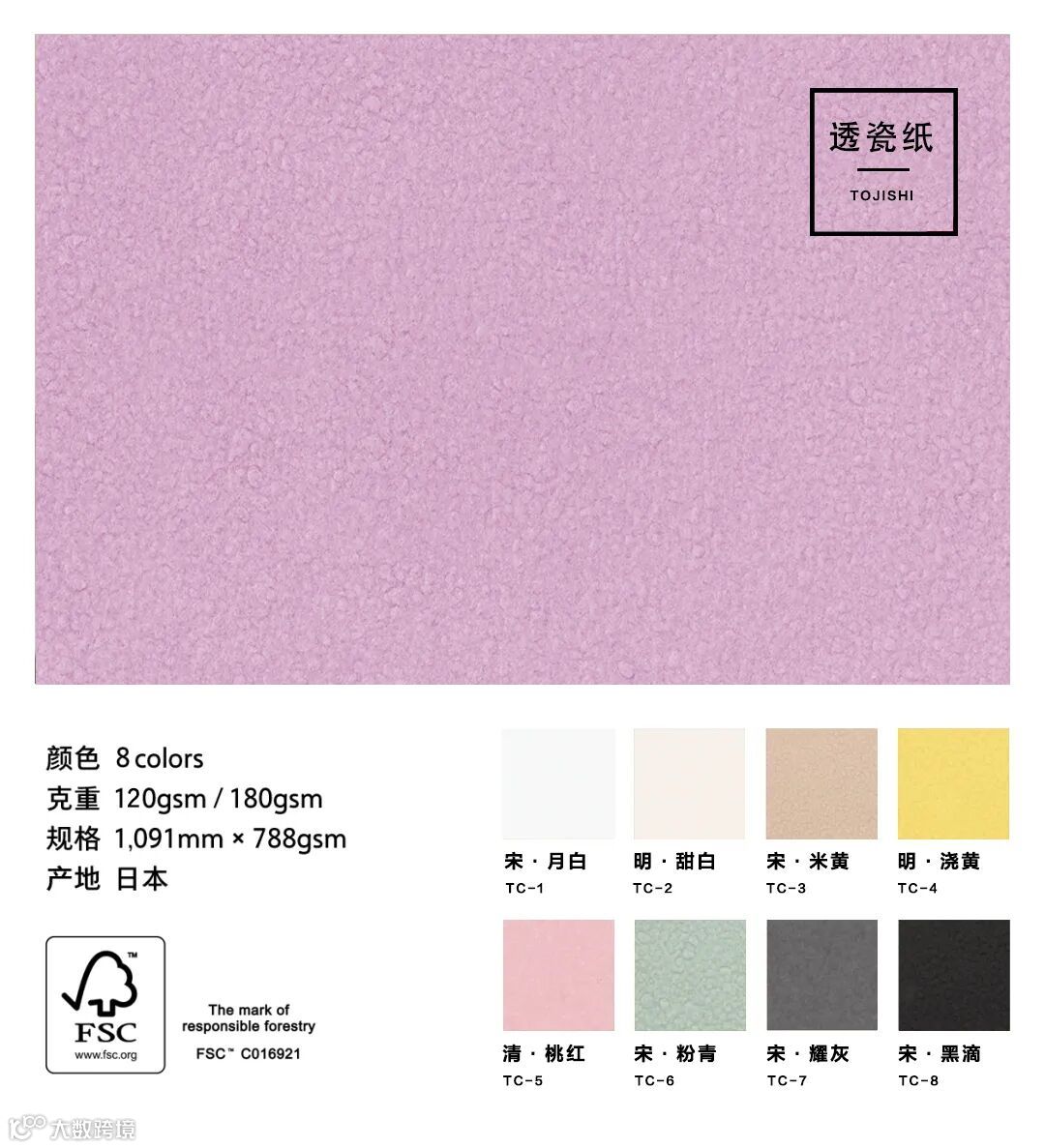 设计师尝试通过现代制纸工艺创造出清逸如瓷的纸张,纸张通光透影,莹润雅致,表面坼而未坼,若影若现的细纹,仿若瓷器釉面的自然开片,意外天成,每一张都是一期一会,惹人心醉神迷。