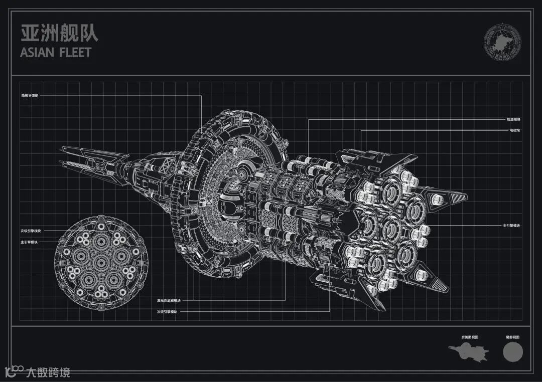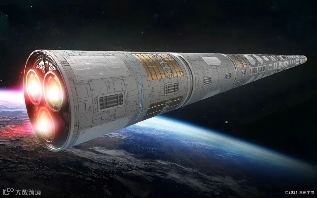 ▴《三体世界观》插图 “万有引力”号后侧视图