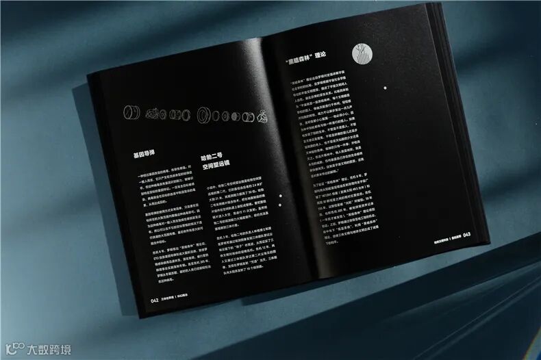 三册内封采用120g 黝黑艺术纸制作,结合烫银、印银工艺和多层次银色油墨印刷,巧妙还原 “ 点、线、面 ” 的封面设计,展现《三体世界观》极丰富的硬核构成。