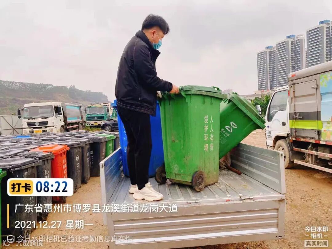 2、及时更换辖区内垃圾坏桶和加装桶盖。