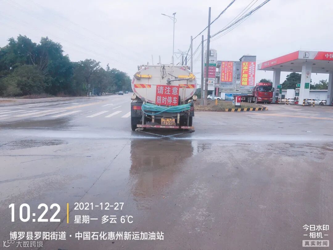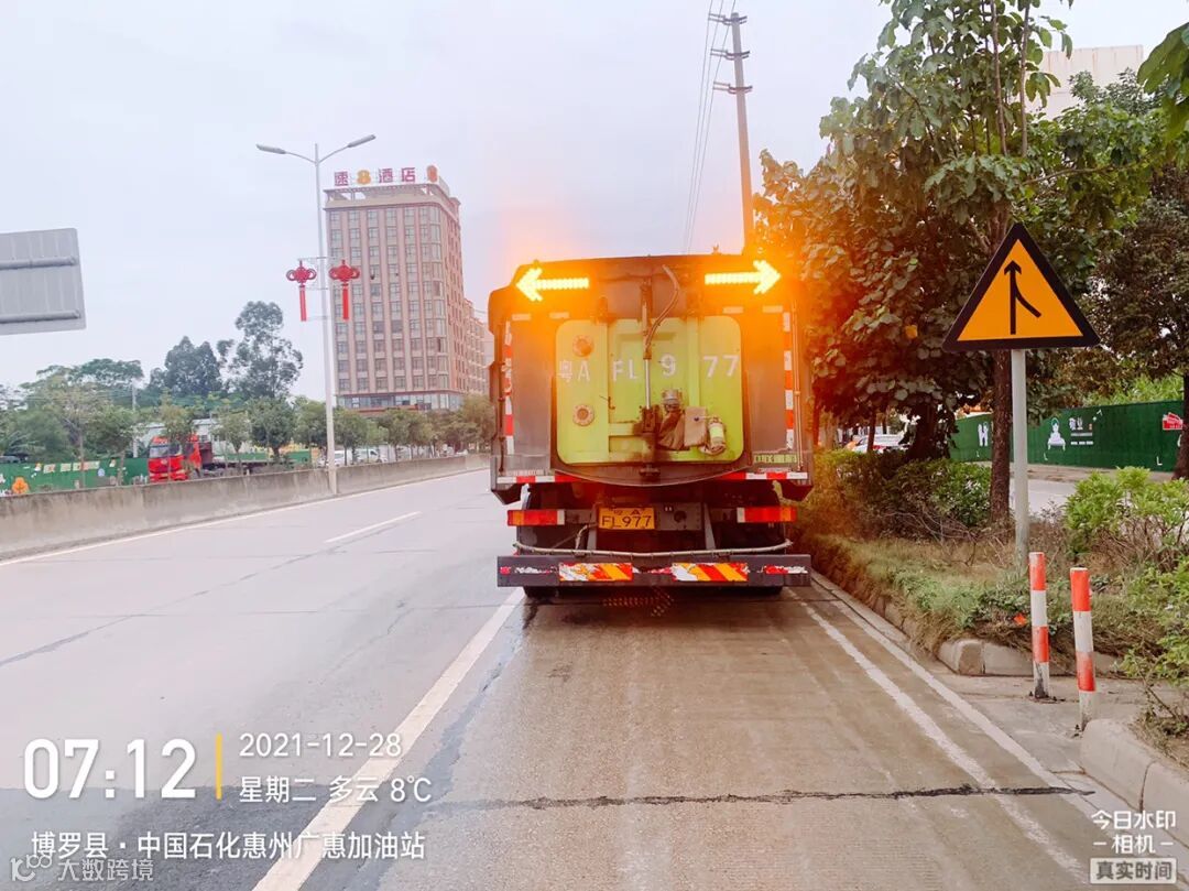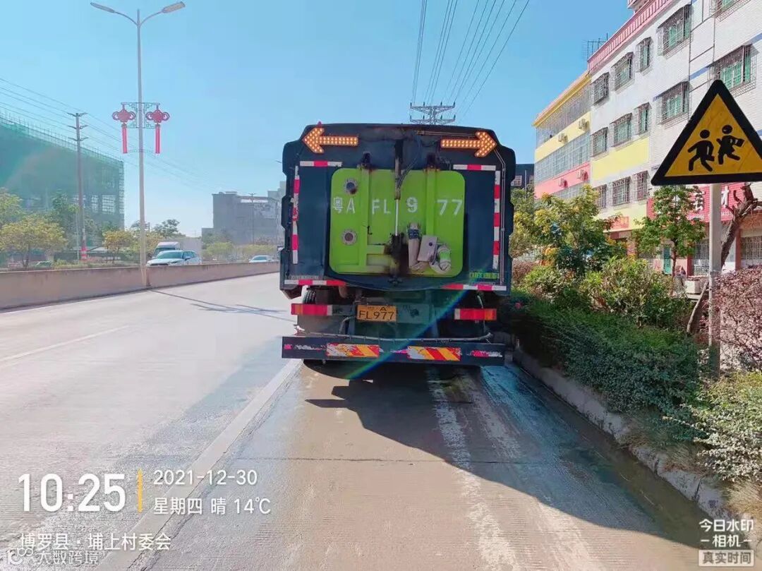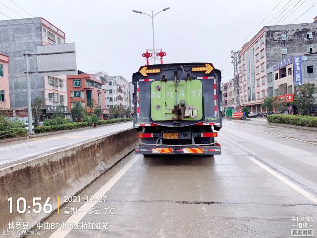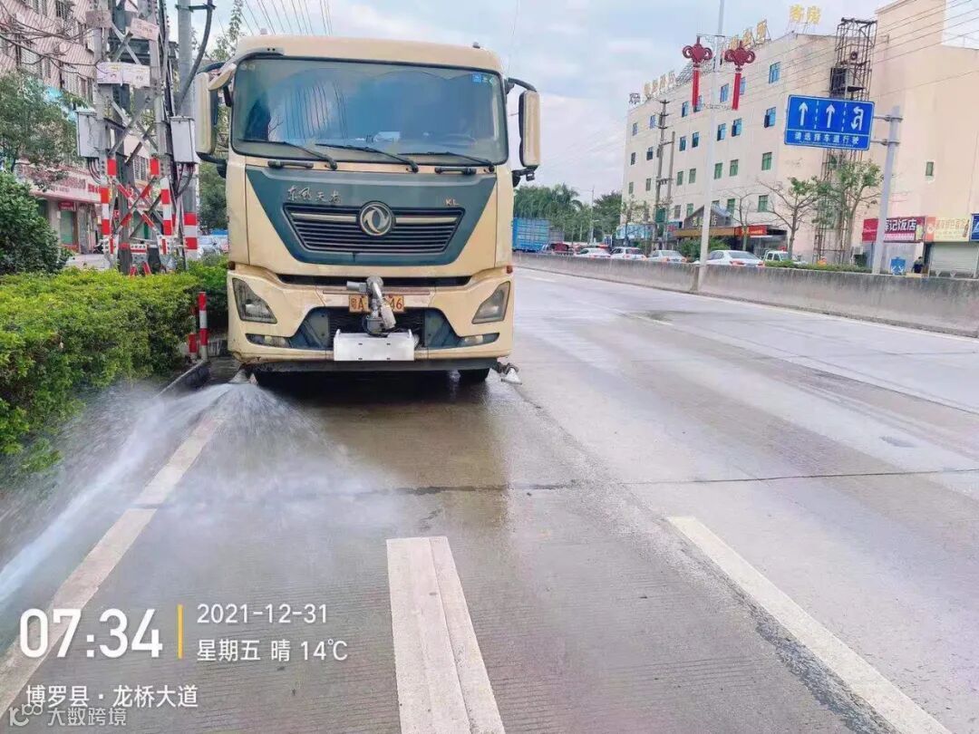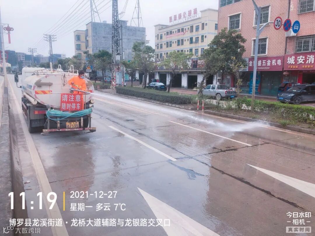 5、加强镇区和龙桥大道、广汕路的洒水降尘作业。