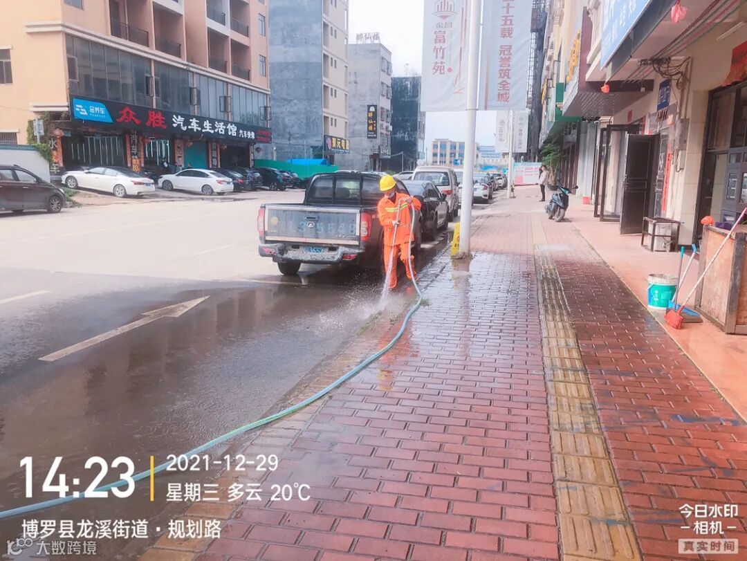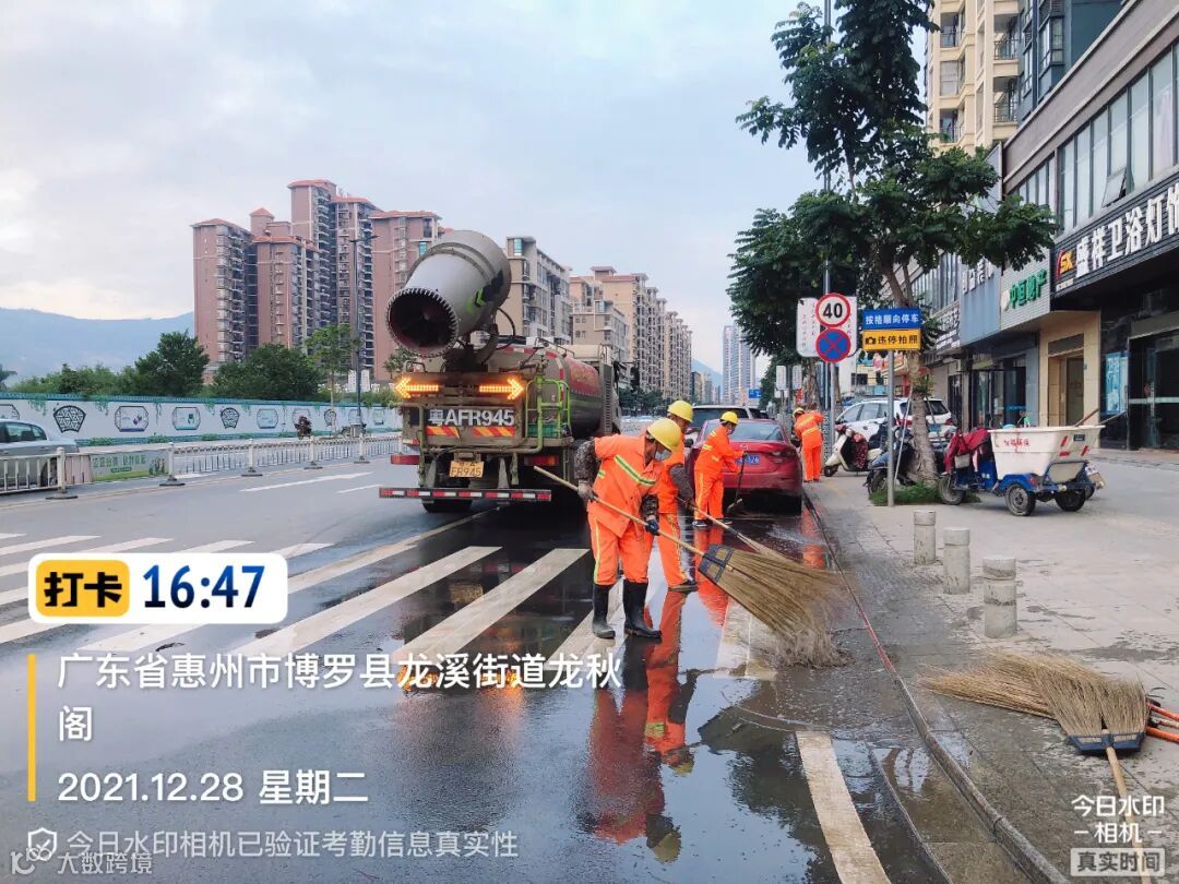 (清洗龙溪大道边沙及清扫积水)