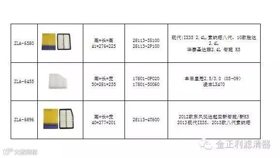 以下为金正利新型滤清器更新项目,如需订货可联系各区域业务经理