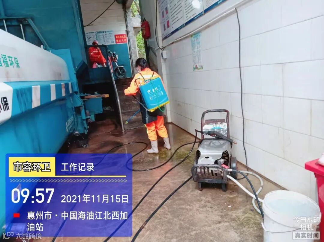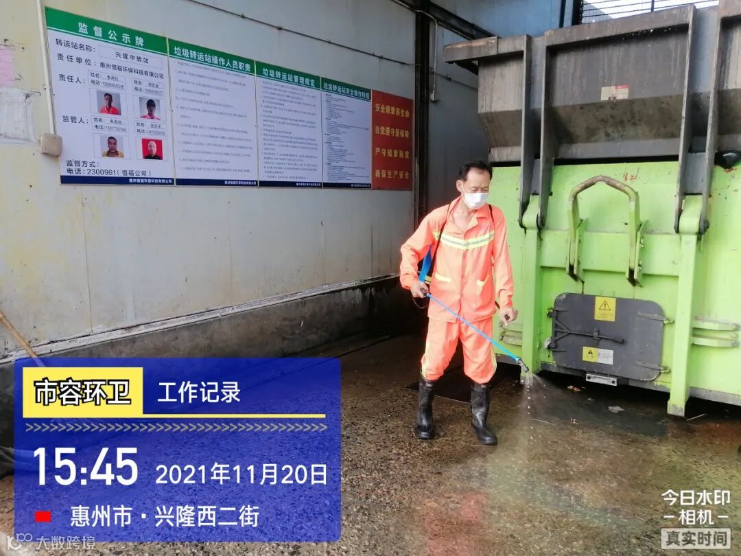 中转站/公厕日常作业及维护,每日两次以上高压冲洗并喷雾消毒站内外地面及箱体