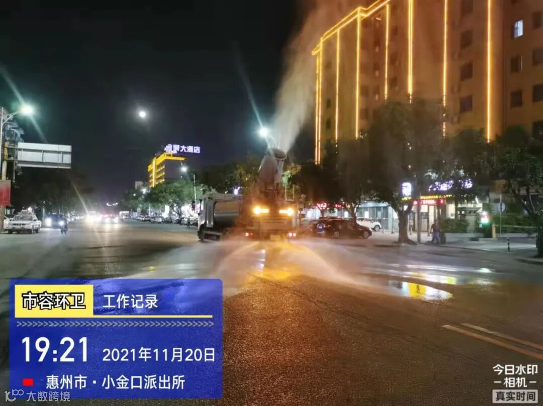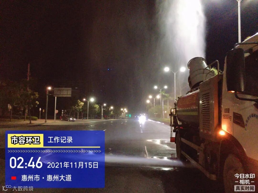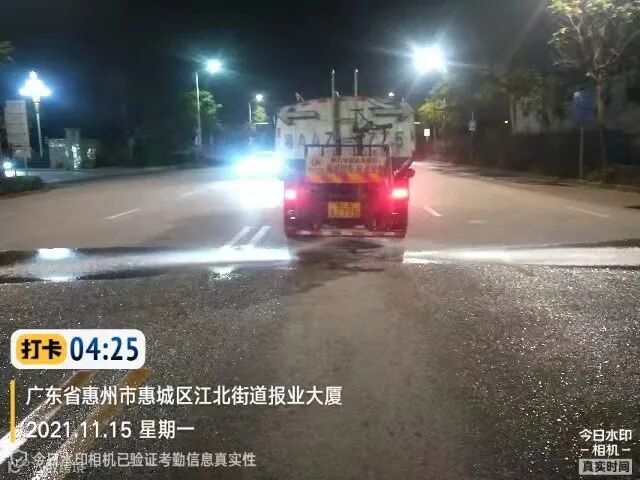 白天夜间常态化冲洗清扫辖区各路段及沿线喷雾洒水降尘作业