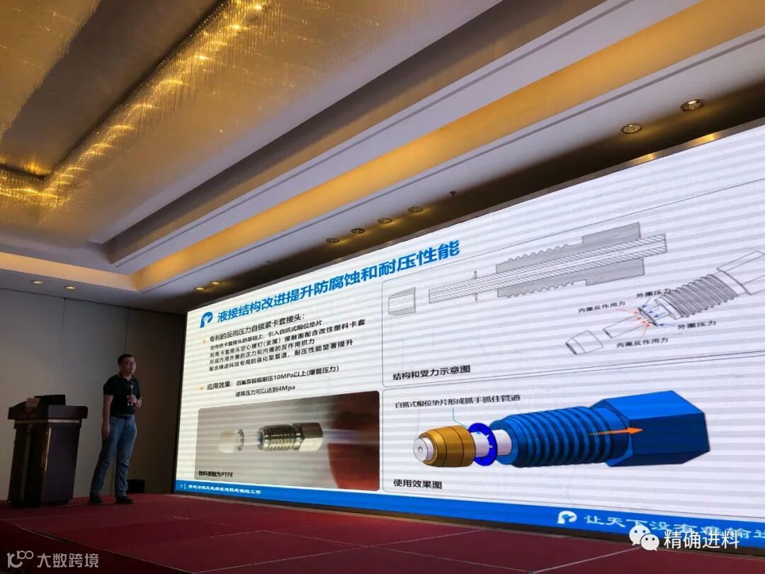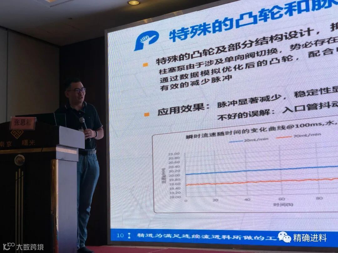 7月31日上午,2020年第四届微化工技术研究与行业应用及工艺优化工程设计研讨会在南京举行。杭州精进科技有限公司作为参展商参加本次会议,并由张思相代表本公司对“连续流中的进料问题”在会议上做相关探讨。现场座无虚席,反响热烈,行业资深专家从技术选择、工艺设计、设备选型、运行维护和应用实例进行系统交流研讨,展示和交流先进的微反应流动化学技术及设备应用,为参会代表创造更多的精准对接合作交流机会。