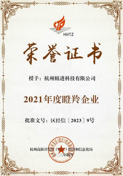 2021年度瞪羚企业证书