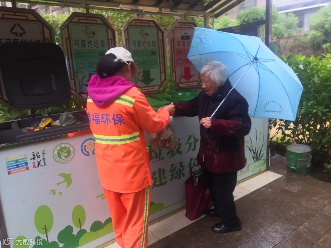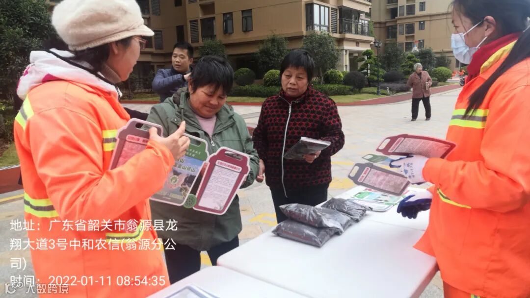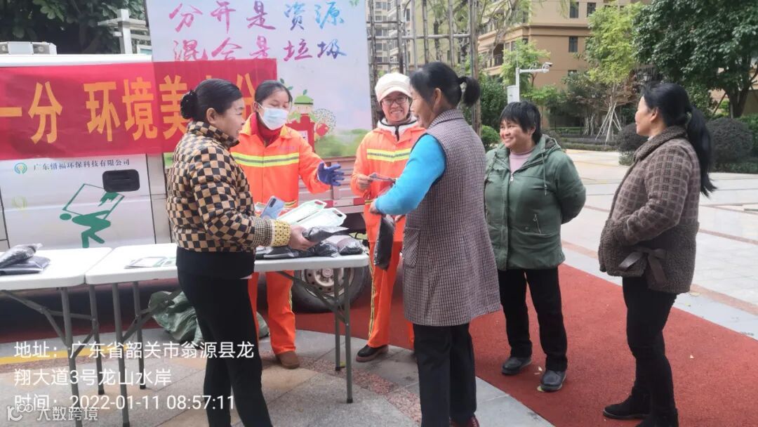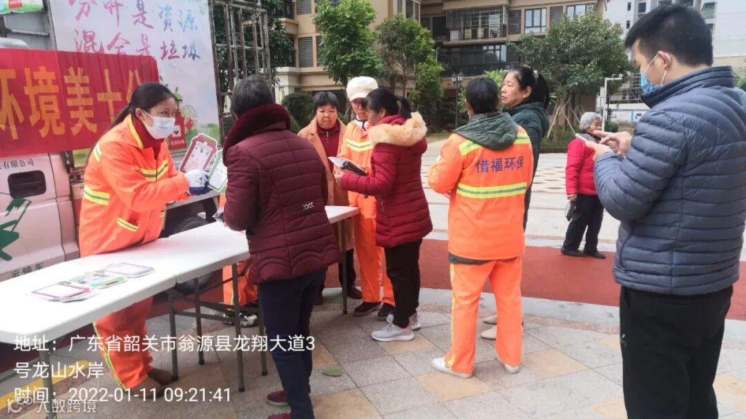 1、垃圾分类人员在龙山水岸小区开展2022文明健康绿色环保系列活动并在各小区守点宣传。