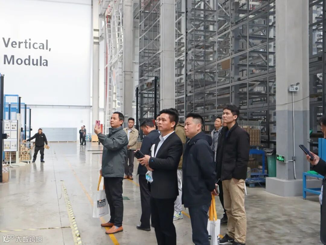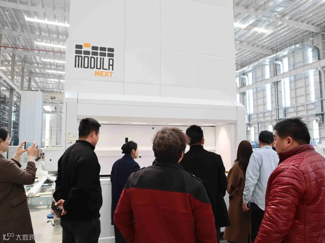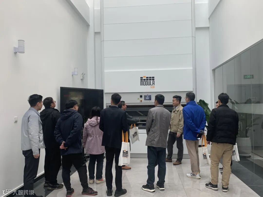 在Modula摩登纳销售经理Tina与Jack的引导下,智博数字参观团深入智能制造腹地,近距离接触全球领先的 Modula VLM(垂直升降模块)生产线。