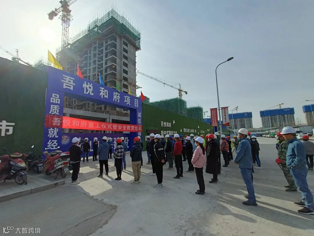 银川吾悦和府积极配合疫情防控工作,严守防疫要求。上午9:30,复工仪式正式启动,项目全员热情满满,士气高涨。